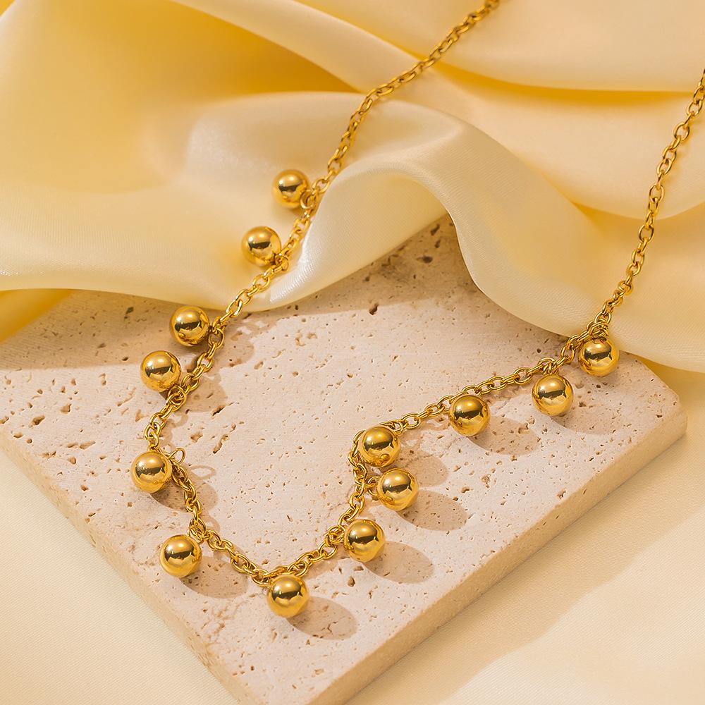 Модное ожерелье из титановой стали, браслет, золотая бусина, подвеска, не выцветает, нишевая ключичная цепочка для женщин, высокое чувство