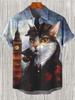 Летние мужские рубашки с короткими рукавами в стиле ретро с рисунком в стиле аниме и кошек, топы с короткими рукавами, модные повседневные рубашки для отдыха и улицы для мужчин