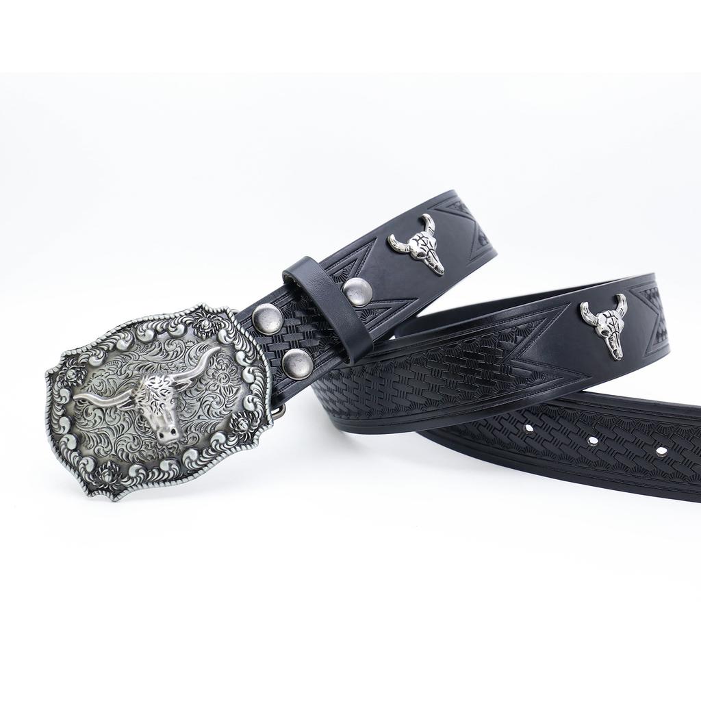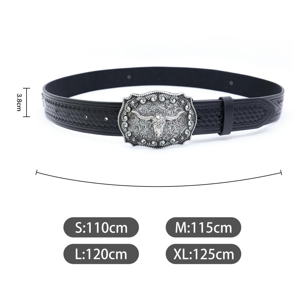 Ремень из джинсовой ткани Western Silver Bull Head Big Board Buckle Vintage Men's Punk Hip Hop Pu Leather