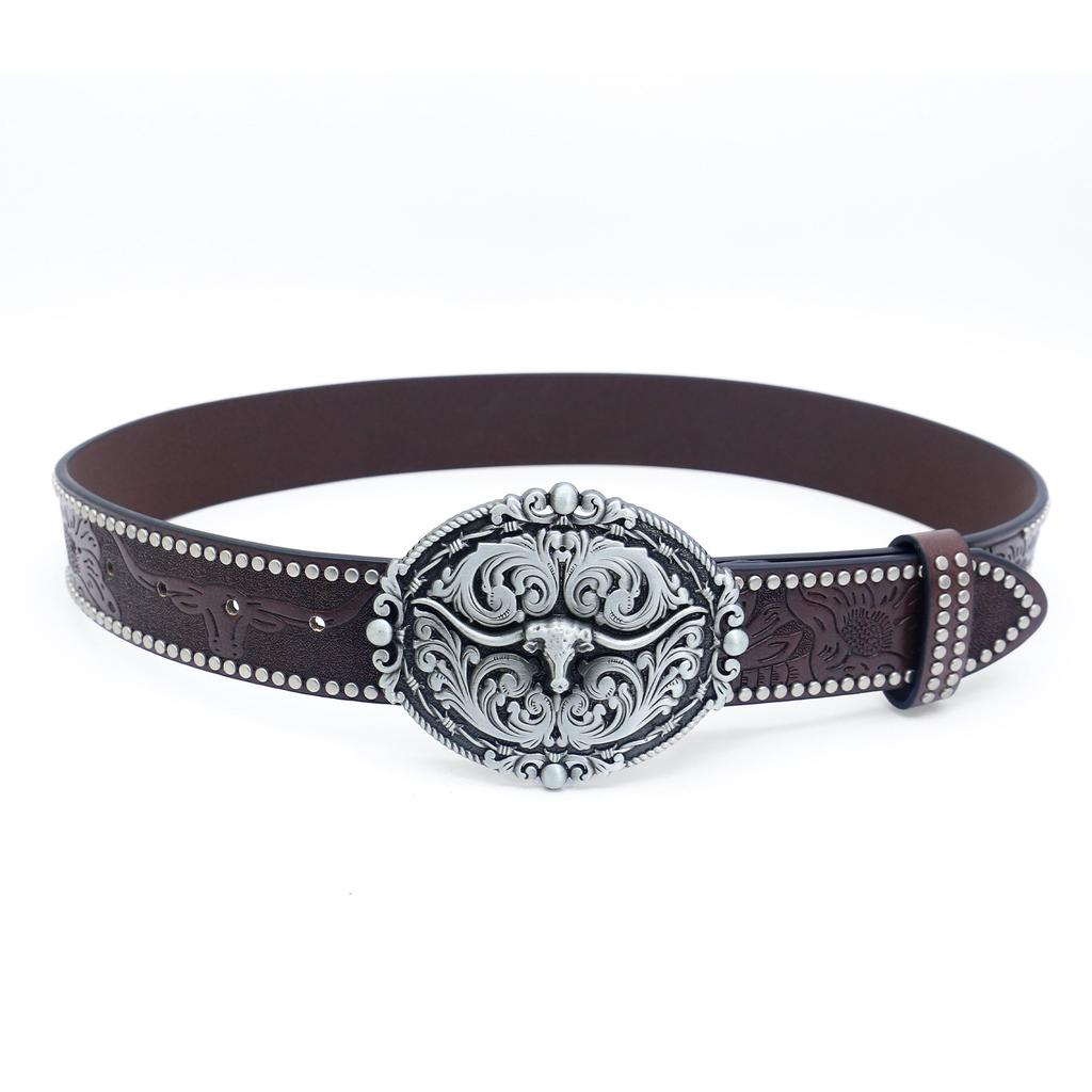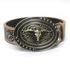 Ремень из джинсовой ткани Western с резной головой быка и винтажными бусинами по краям для мужчин в стиле панк, хип-хоп, искусственная кожа