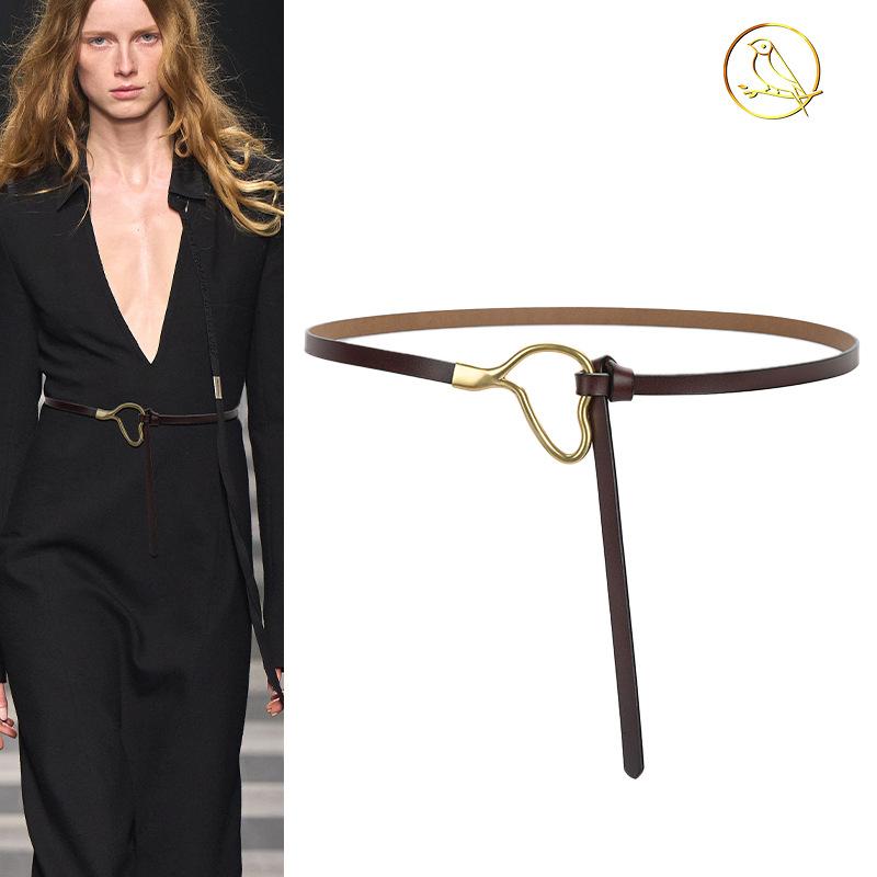 Женский кожаный ремень с узлом и украшением из классической рубашки, простой тонкий пояс из натуральной воловьей кожи, модный — купить товар онлайн с бесплатной доставкой до всему миру!