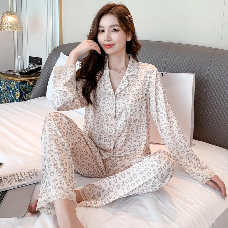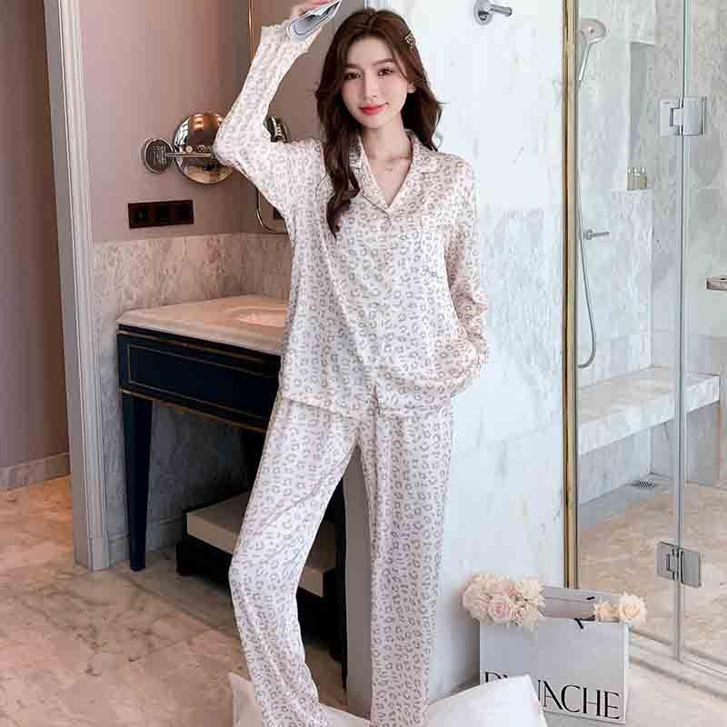 Пижама для женщин на весну и лето, простой и удобный комплект домашней одежды из ледяного шелка с длинными рукавами большого размера