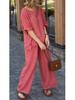 Этот стильный комплект из двух предметов создан для современной женщины, которая ищет комфорт и элегантность в теплое время года.. Изготовленный из дышащей смеси хлопка и льна, он имеет однотонный дизайн, идеально подходящий для универсального стиля.. В комплект входят свободные брюки и соответствующий топ, которые создают непринужденный, но изысканный образ.. Этот наряд идеально подходит для повседневных прогулок или отдыха, сочетая в себе непринужденный шик и непревзойденный комфорт.