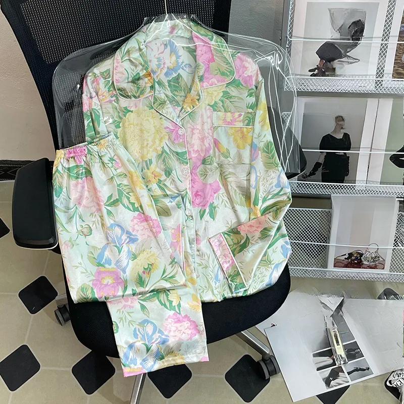 Женская пижама на весну, летние роскошные брюки с длинным рукавом с принтом, пижама с лацканами для дома Soft Home