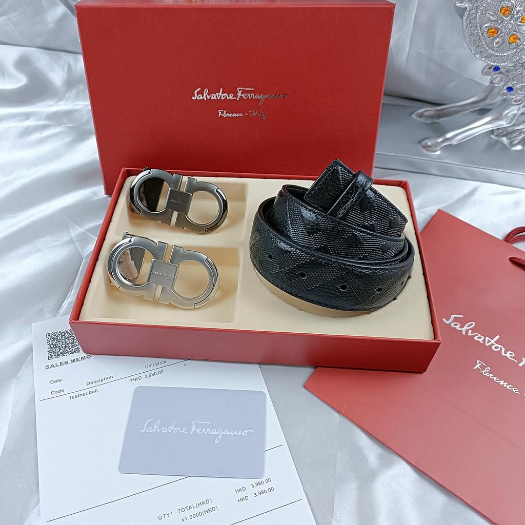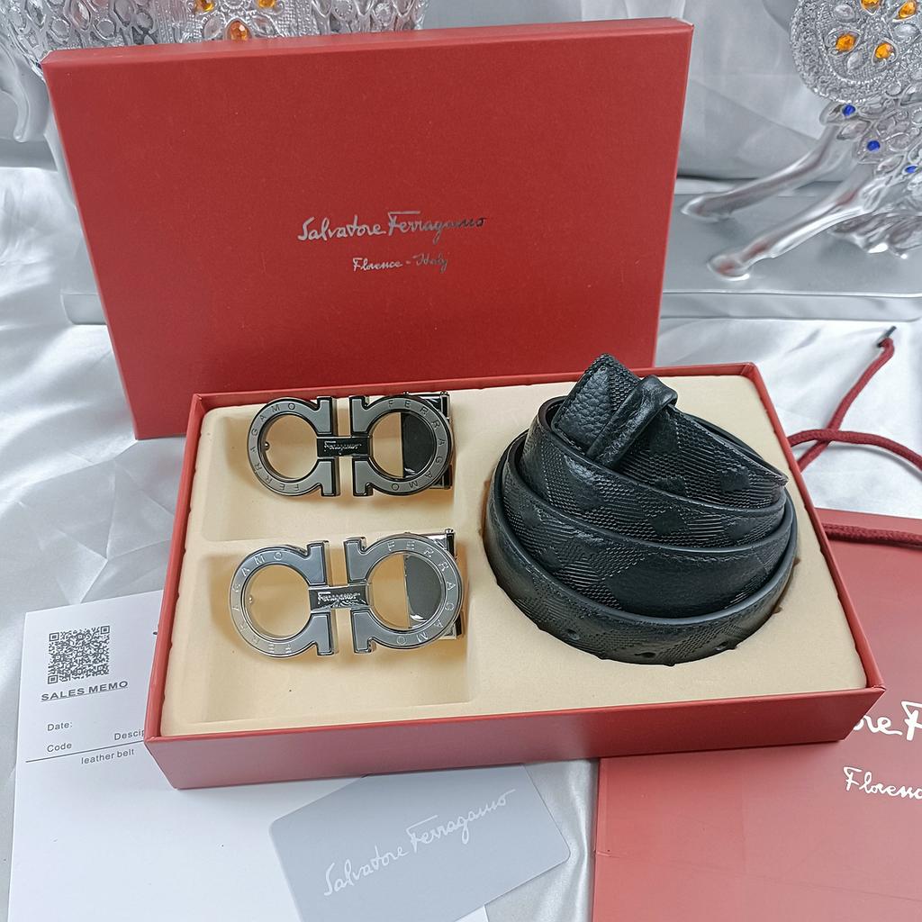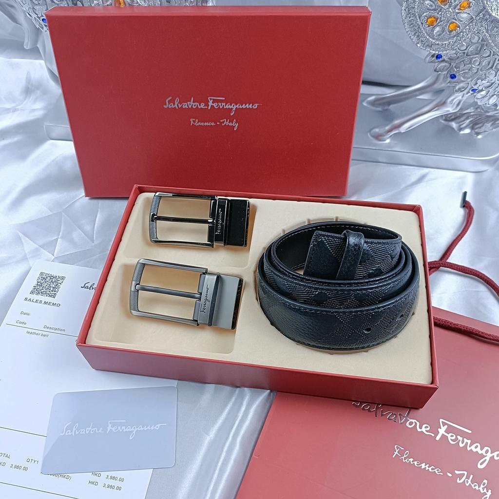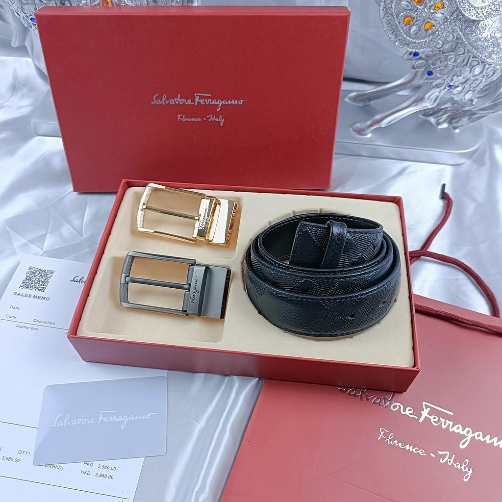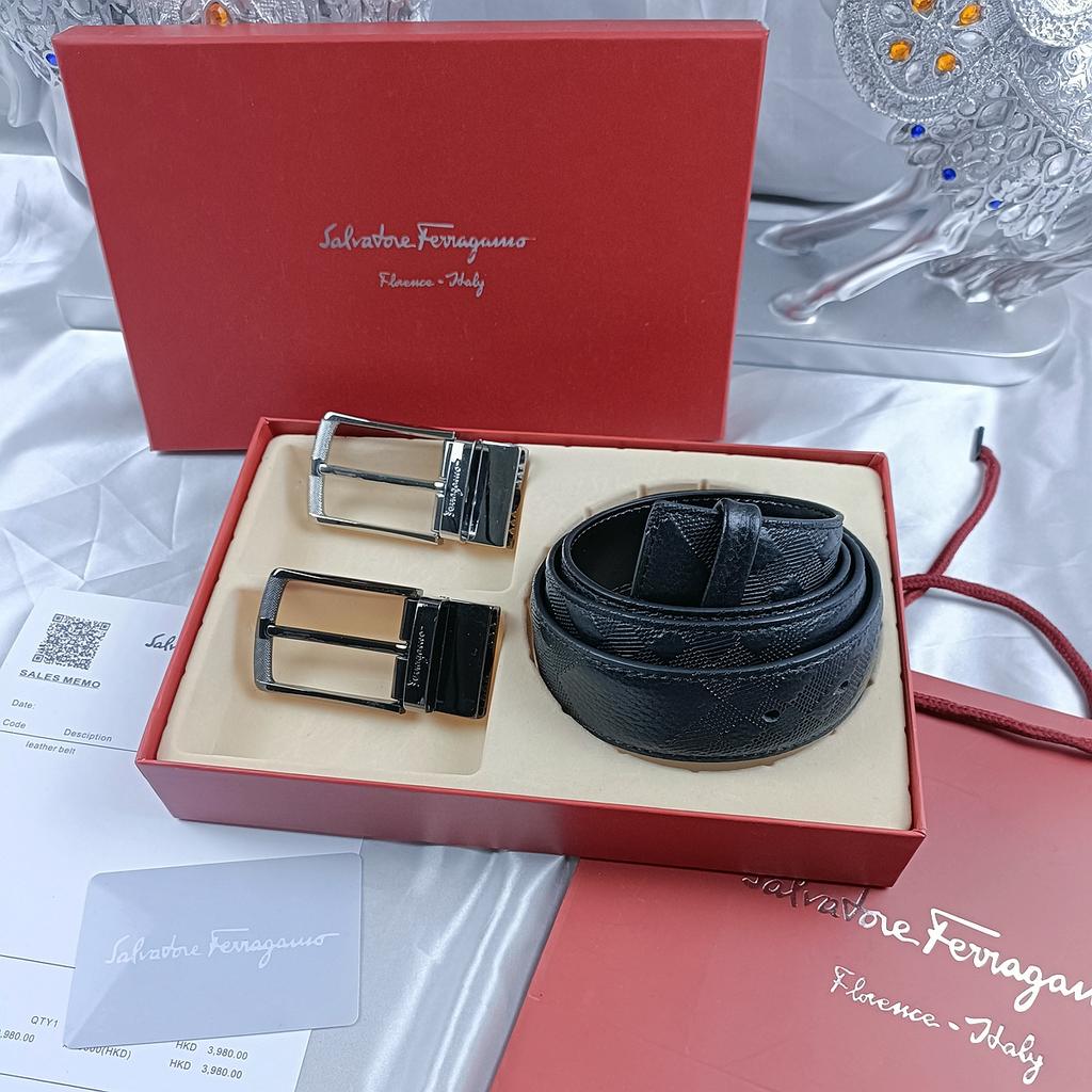 Salvatore Ferragamo 3,5 см мужской ремень люксовый брендовый дизайнерский ремень с двойной пряжкой пряжка один ремень подарочная коробка