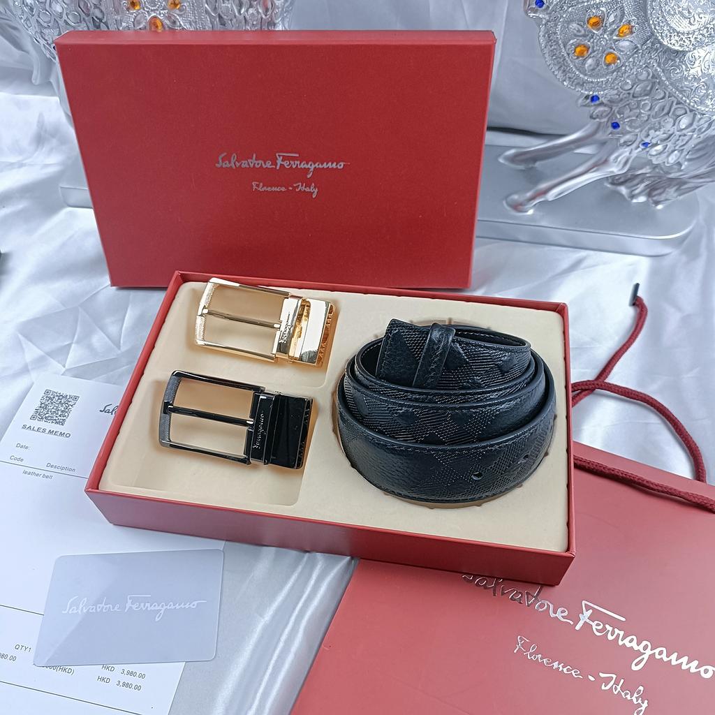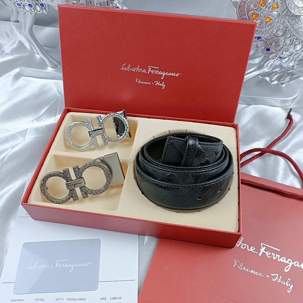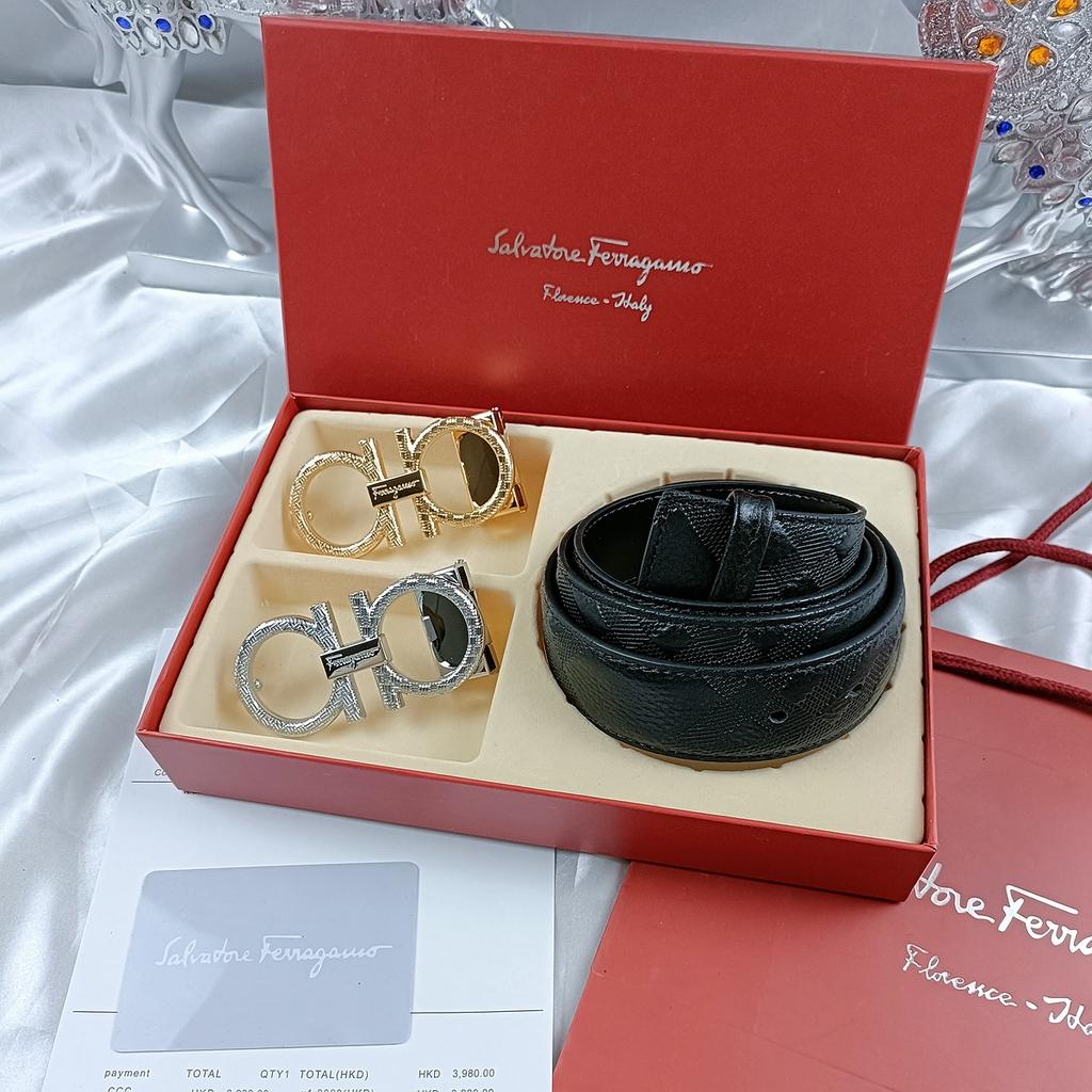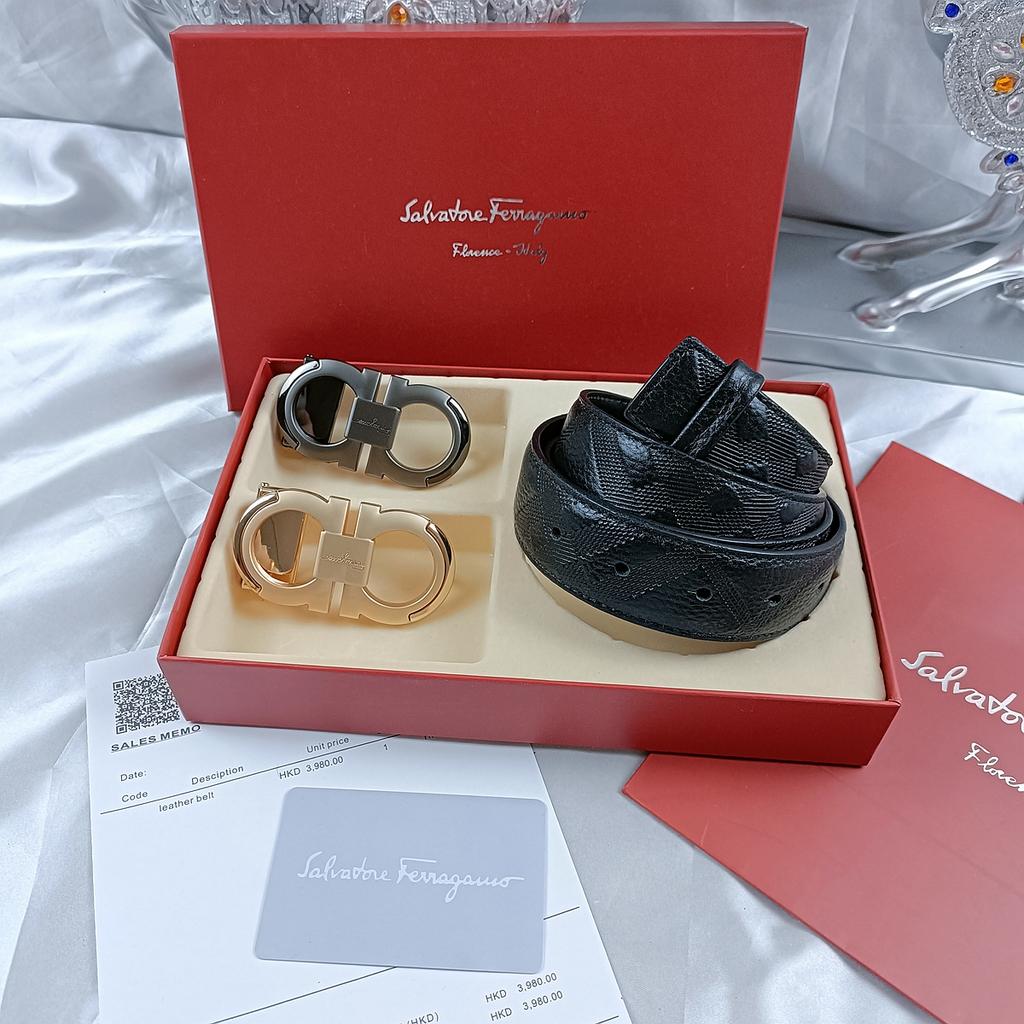 Salvatore Ferragamo 3,5 см мужской ремень люксовый брендовый дизайнерский ремень с двойной пряжкой пряжка один ремень подарочная коробка