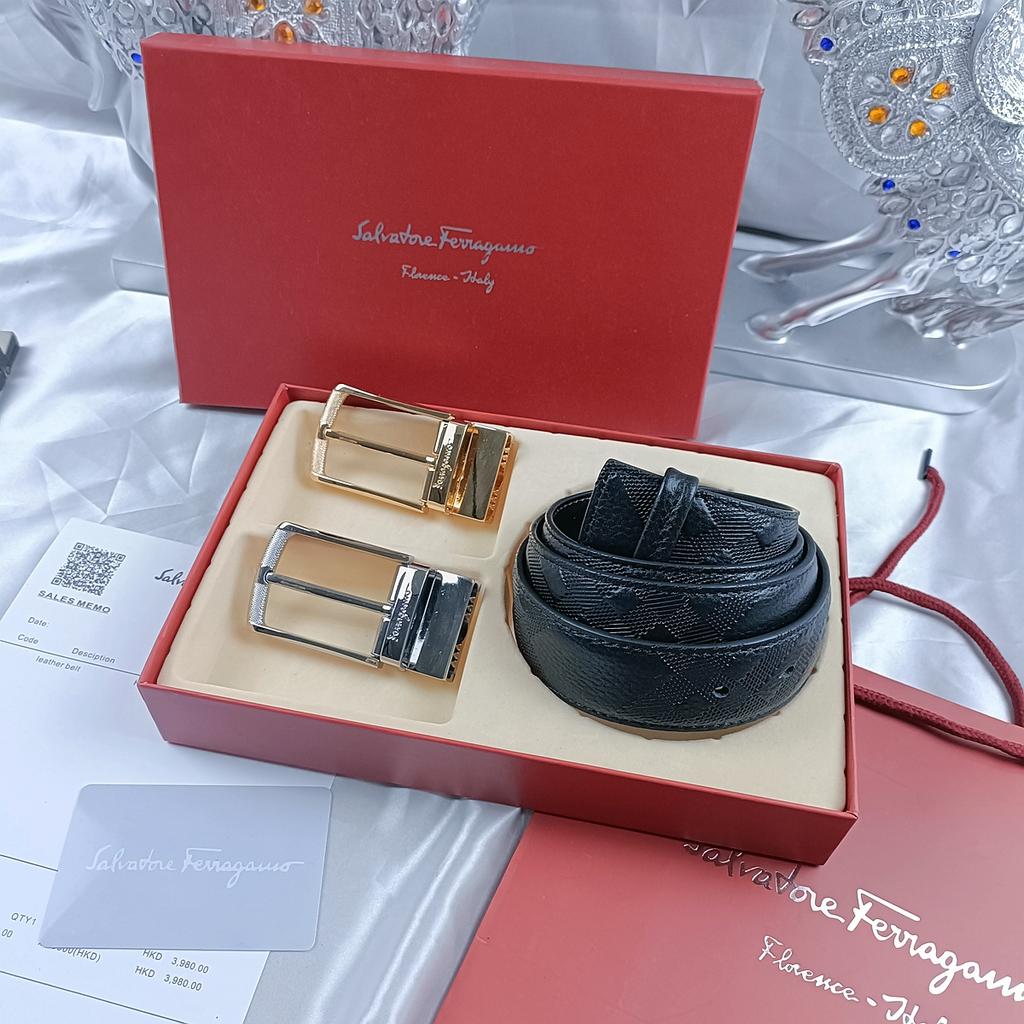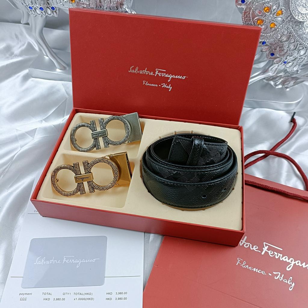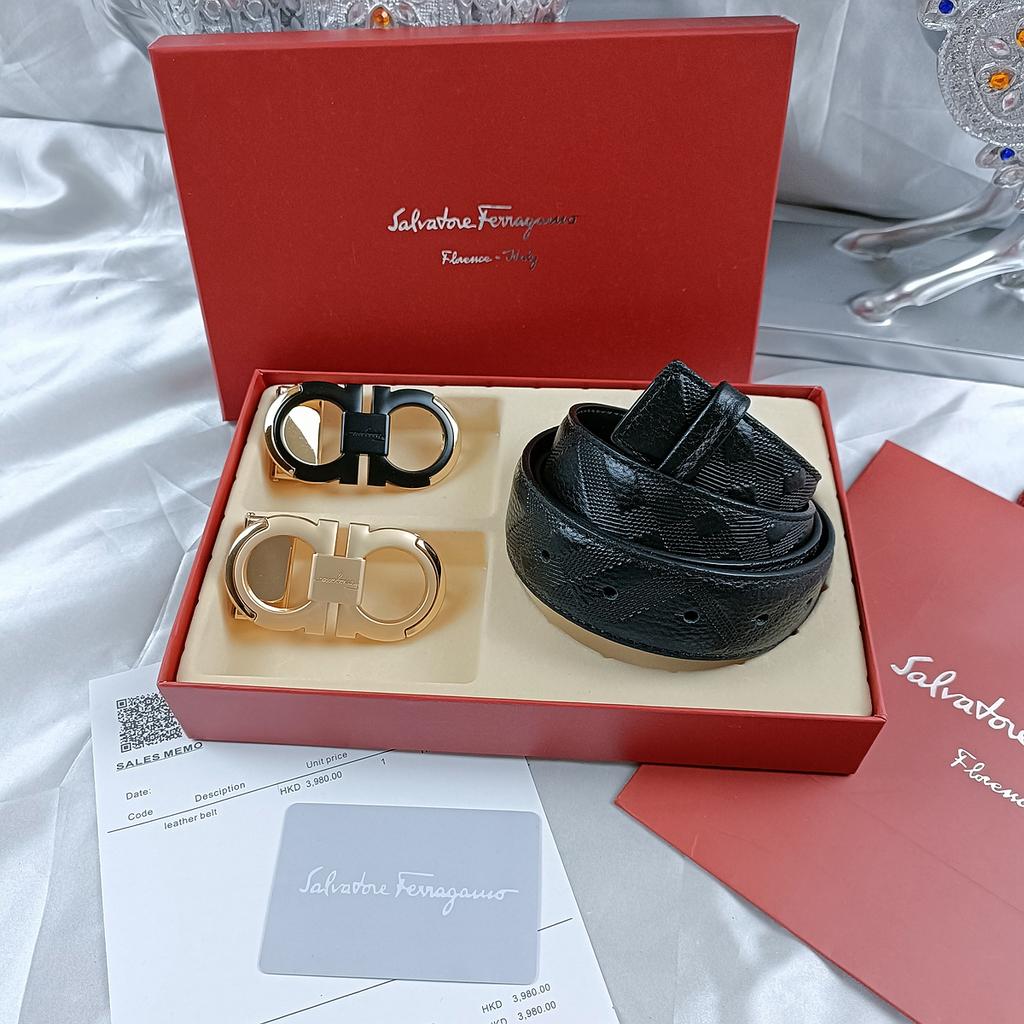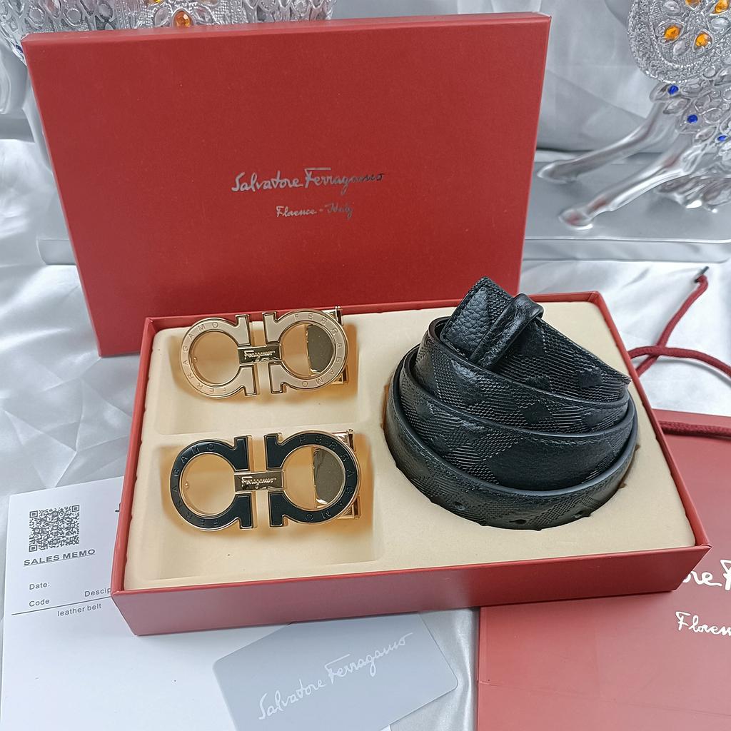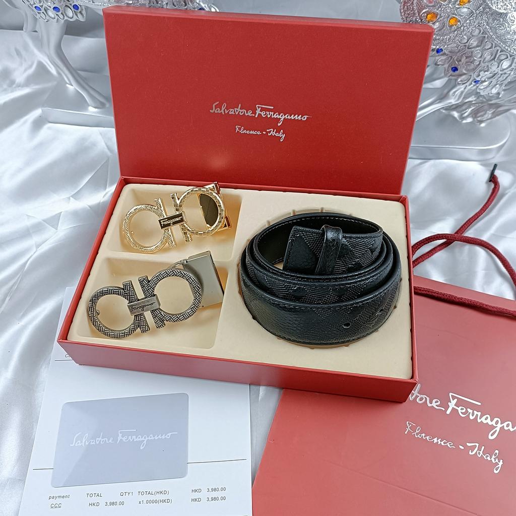 Salvatore Ferragamo 3,5 см мужской ремень люксовый брендовый дизайнерский ремень с двойной пряжкой пряжка один ремень подарочная коробка