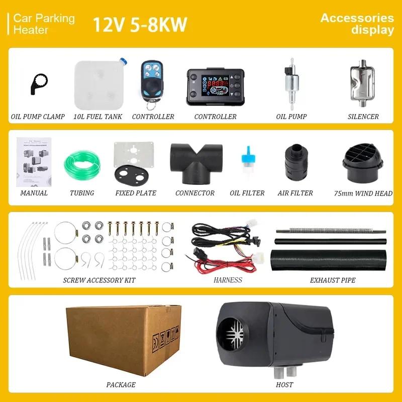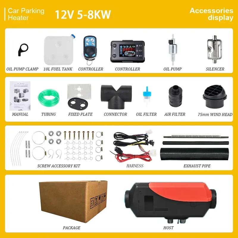 12 В 5 кВт-8 кВт Автомобильный дизельный обогреватель Webasto Подогрев сидений без включения двигателя Работающий на топливе Бесшумный Сухая парковка Дистанционный
