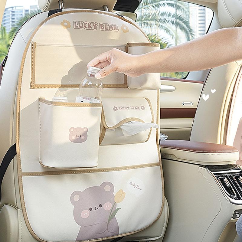 Сумка для хранения на спинку сиденья автомобиля, милый мультяшный кожаный многофункциональный органайзер на заднее сиденье автомобиля, подстаканник, держатель для салфеток, противоударный коврик — купить товар онлайн с бесплатной доставкой по всему миру!