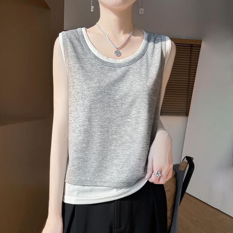 This Summer Double-layer Two-piece Knitted Sleeveless Vest Is A Versatile Low Round-neck Strappy Top — купить товар онлайн с бесплатной доставкой по всему миру!