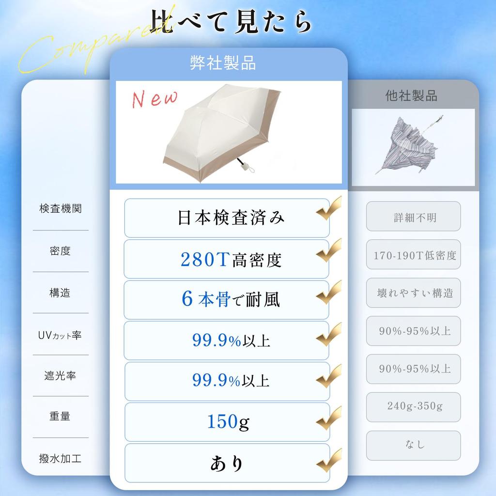 [Ветроустойчивость] До сих пор зонты становились слабее, когда их делали легче, и тяжелее, когда их делали прочнее.. Однако эта серия зонтов изготовлена из материалов с превосходной прочностью и долговечностью и тщательно обработана искусными мастерами, поэтому она разработана с учетом прочности и долговечности, оставаясь при этом легкой и имеет прочную конструкцию каркаса, способную выдерживать скорость ветра до 20 м/с.. Даже если его вывернет наизнанку сильный ветер, его можно сложить обратно, приняв первоначальную форму.. Кроме того, поскольку он изготавливается под строгим контролем качества, начиная с выбора материалов и заканчивая производством, нет необходимости беспокоиться о его порче из-за солнечных ожогов, а его долговечность примерно в 1,7 раза превышает долговечность обычного зонта.