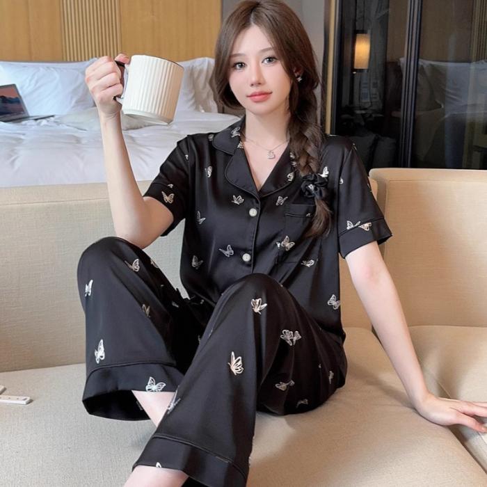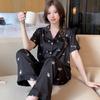 Летняя пижама, женский шелковый атласный пижамный комплект, топы с короткими рукавами, комплект из двух предметов, одежда для сна, домашняя одежда, пижама на пуговицах