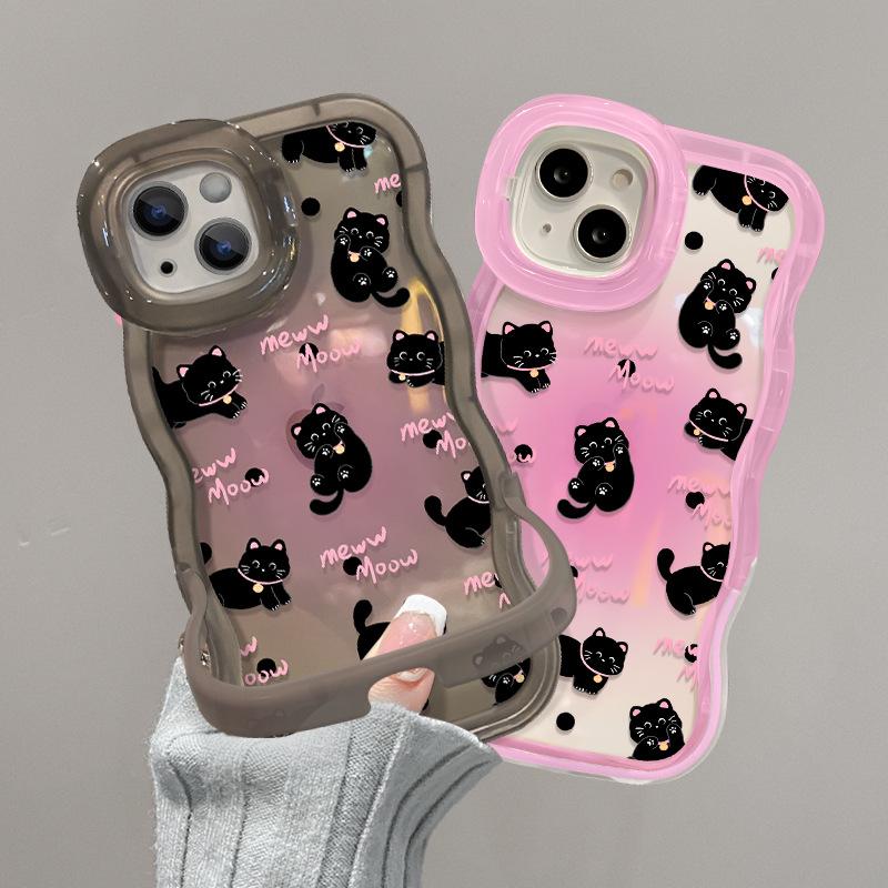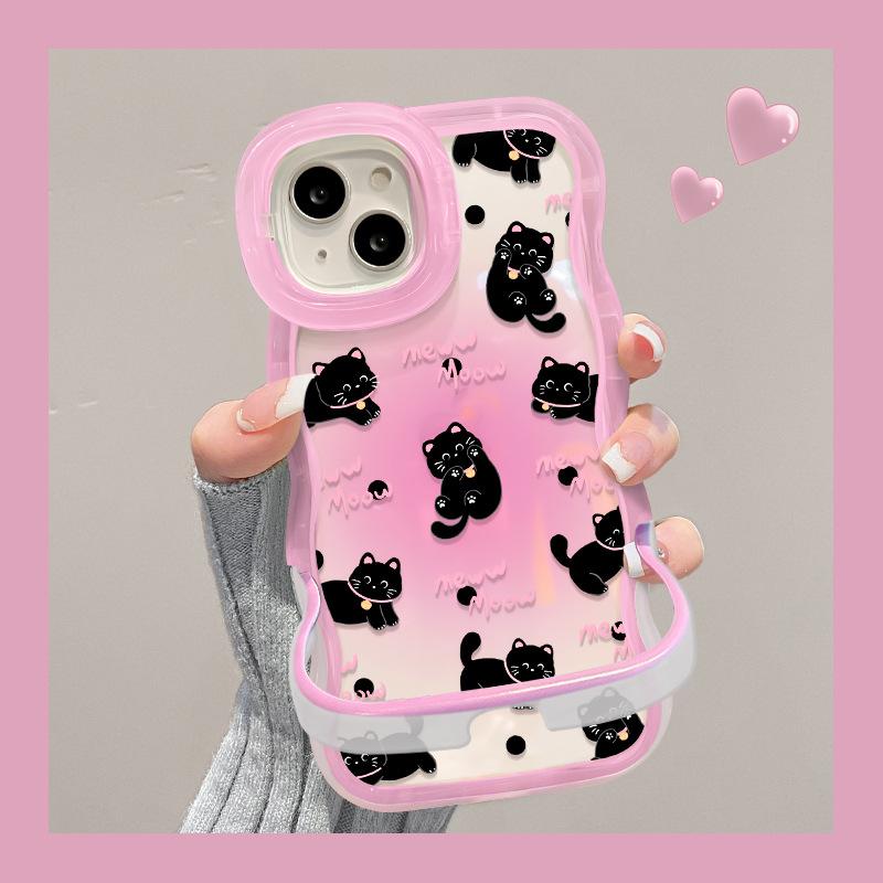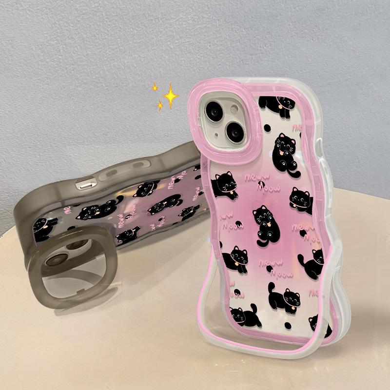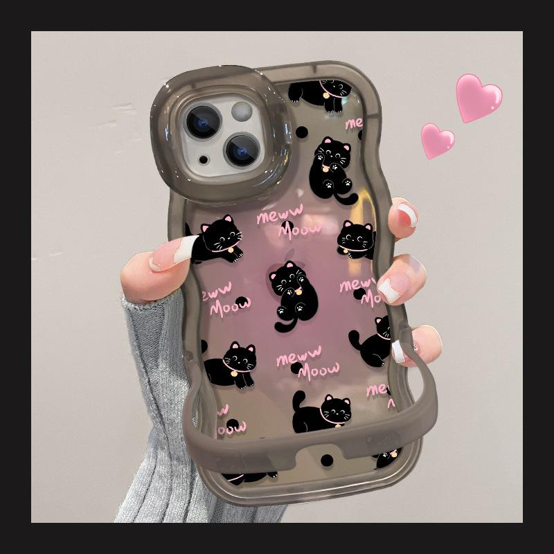 Подходит для Apple 15 Чехол для мобильного телефона iPhone 14 Полный экран Маленький черный кот 13 Волнистая сторона 12 Невидимый двойной кронштейн Защитный чехол
