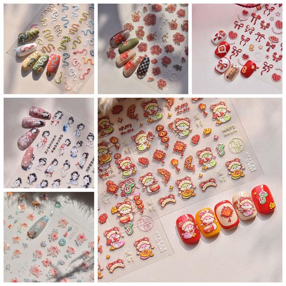 Пион Цветок Китайский Новый год Наклейка для ногтей Аксессуары для ногтей Змея Украшение для ногтей Вечеринка
