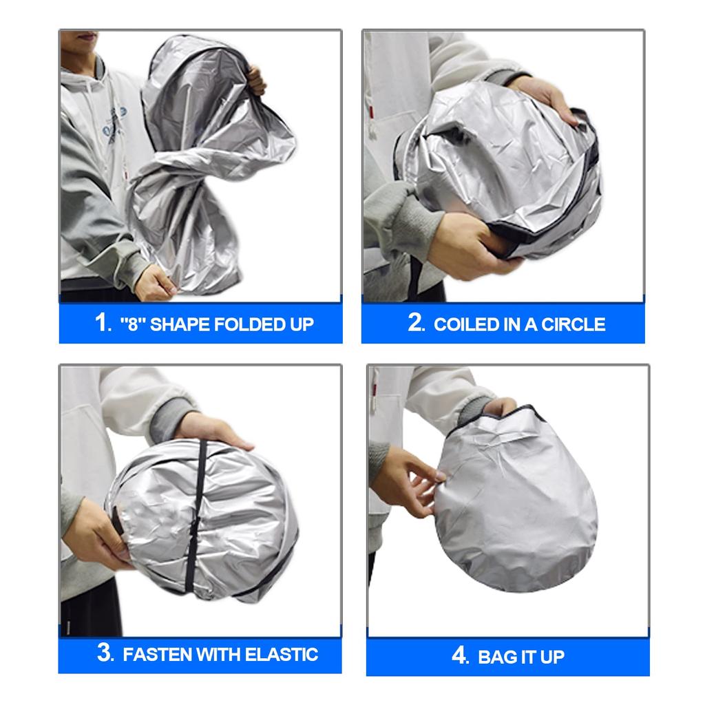 4. Появление: Солнцезащитный козырек на лобовое стекло изготовлен из высококачественного материала с высокой плотностью, отражающего УФ-излучение, армирован высокопрочной пластичной проволокой и использует технологию снижения тепла для блокировки 99% вредных УФ-лучей и тепла.. Он может снизить температуру внутри автомобиля на 20–50 градусов.
