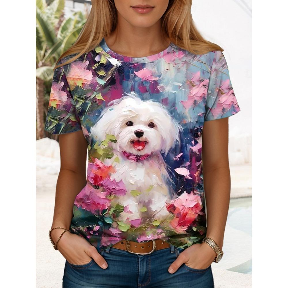 Женская футболка с изображением животных, повседневная, с круглым вырезом, короткими рукавами, топ с круглым вырезом, летняя мода