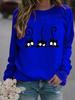 Женские зимние свободные толстовки с длинными рукавами и круглым вырезом, черные кошки с принтом, топы и блузки, футболки больших размеров