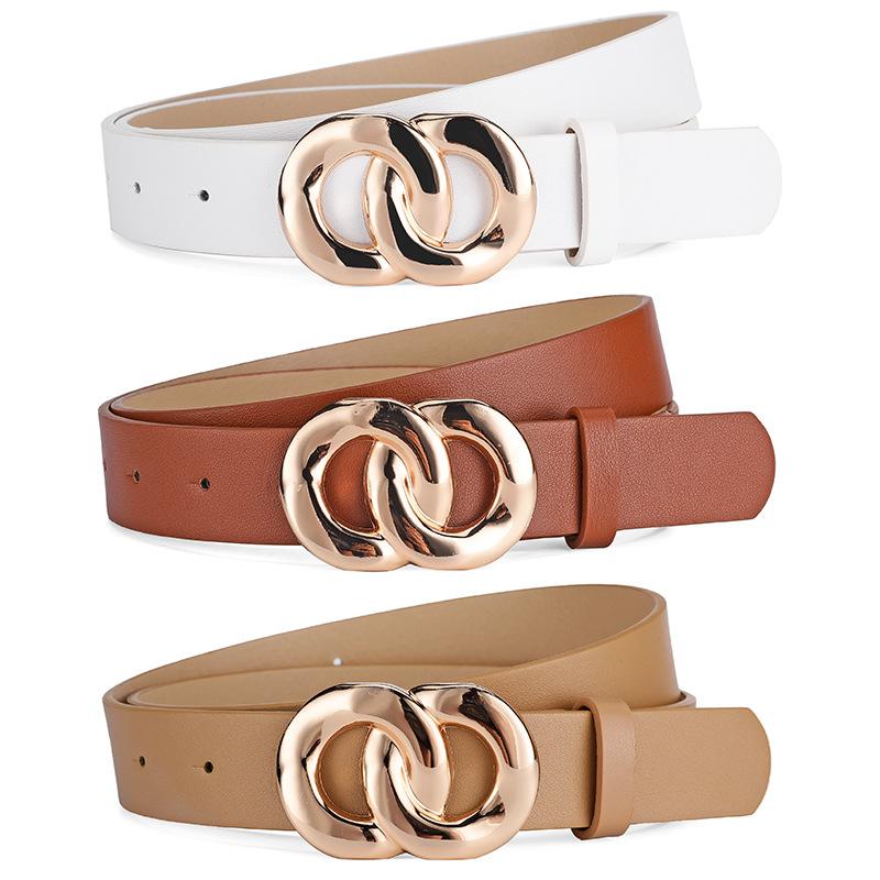 Двойной круг персонализированный ремень с кнопкой из искусственной кожи женский декоративный ремень для джинсов
