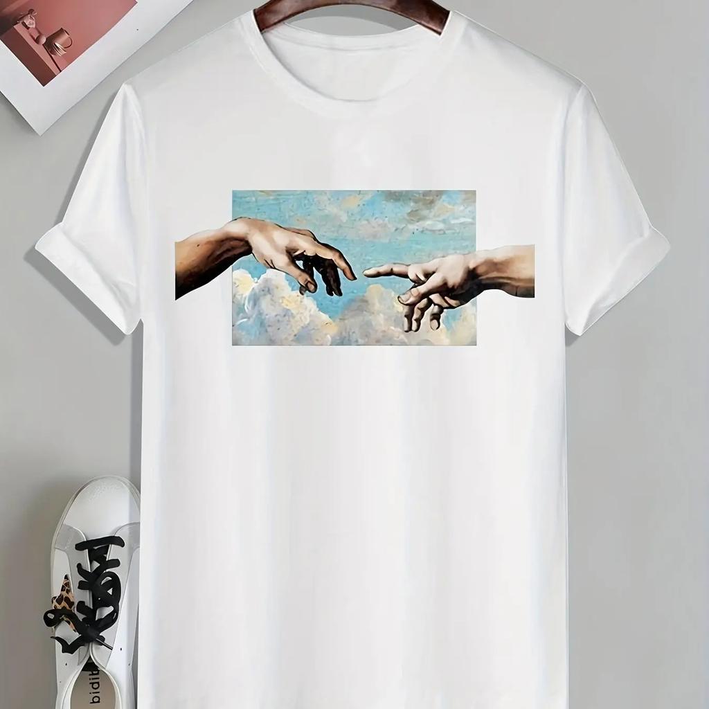 Футболка с принтом «Сотворение Адама», повседневная футболка с коротким рукавом для лета, весны, осени, топы в подарок, женские топы/футболки