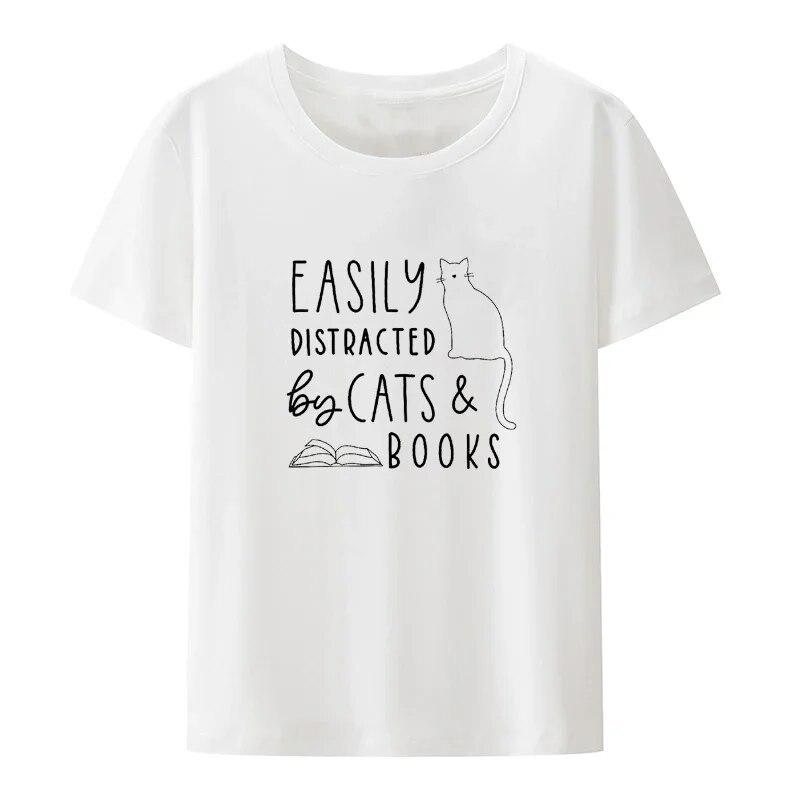 Уличная одежда, легко отвлекающая кошка и книги, забавный подарок для любителей кошек, хлопковая футболка, дышащая тонкая пара с комиксами Cool De Mujer