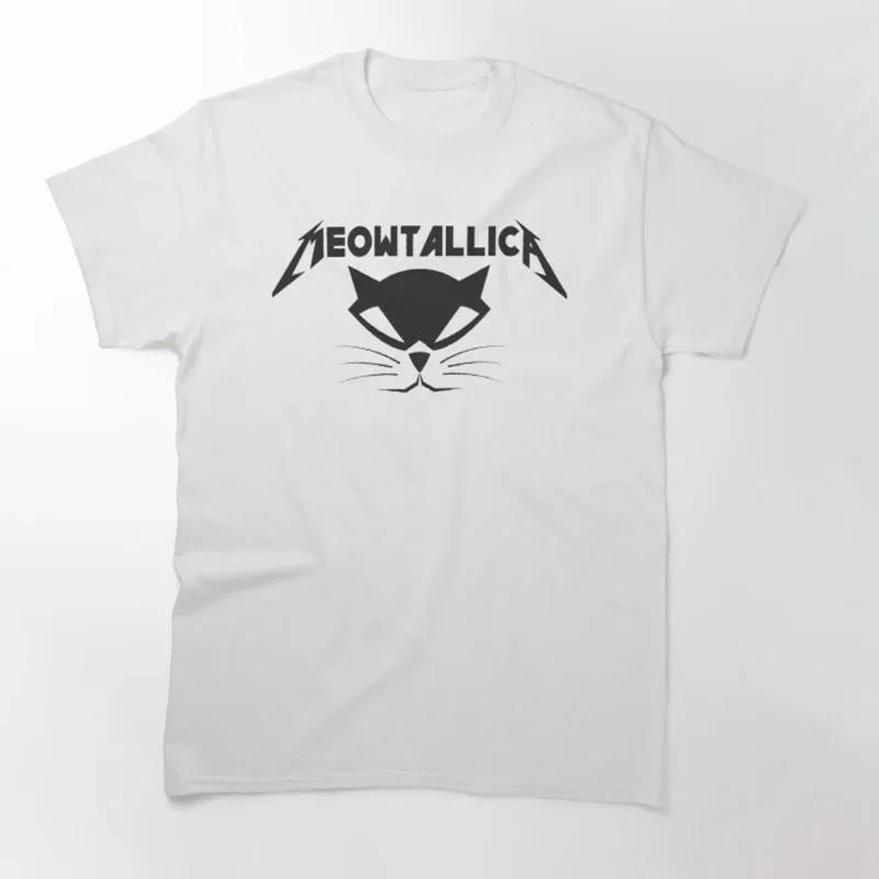 Футболки с принтом Meowtallica Rock Cat Music для унисекс и женщин, модные забавные футболки Unsiex, удобная футболка для пар