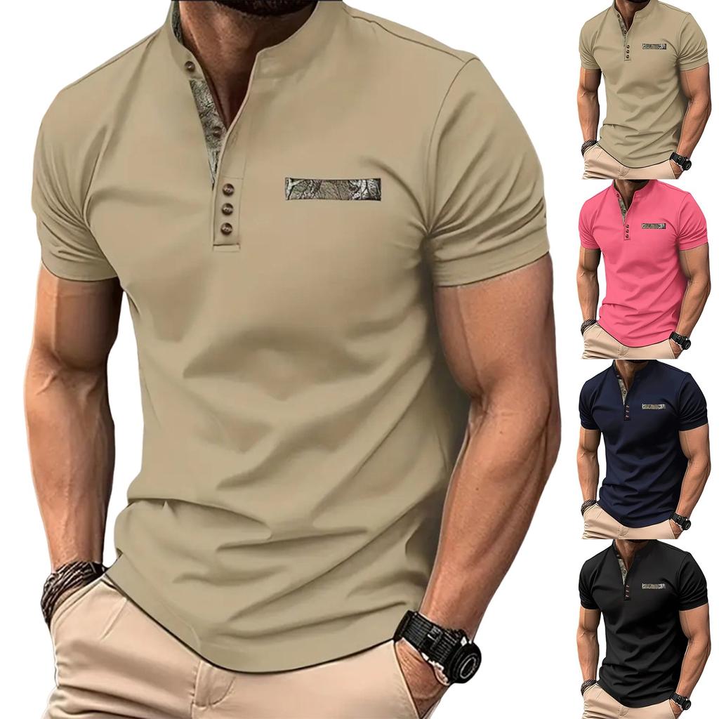 Летний новый мужской повседневный воротник-стойка с коротким рукавом воротник рубашки