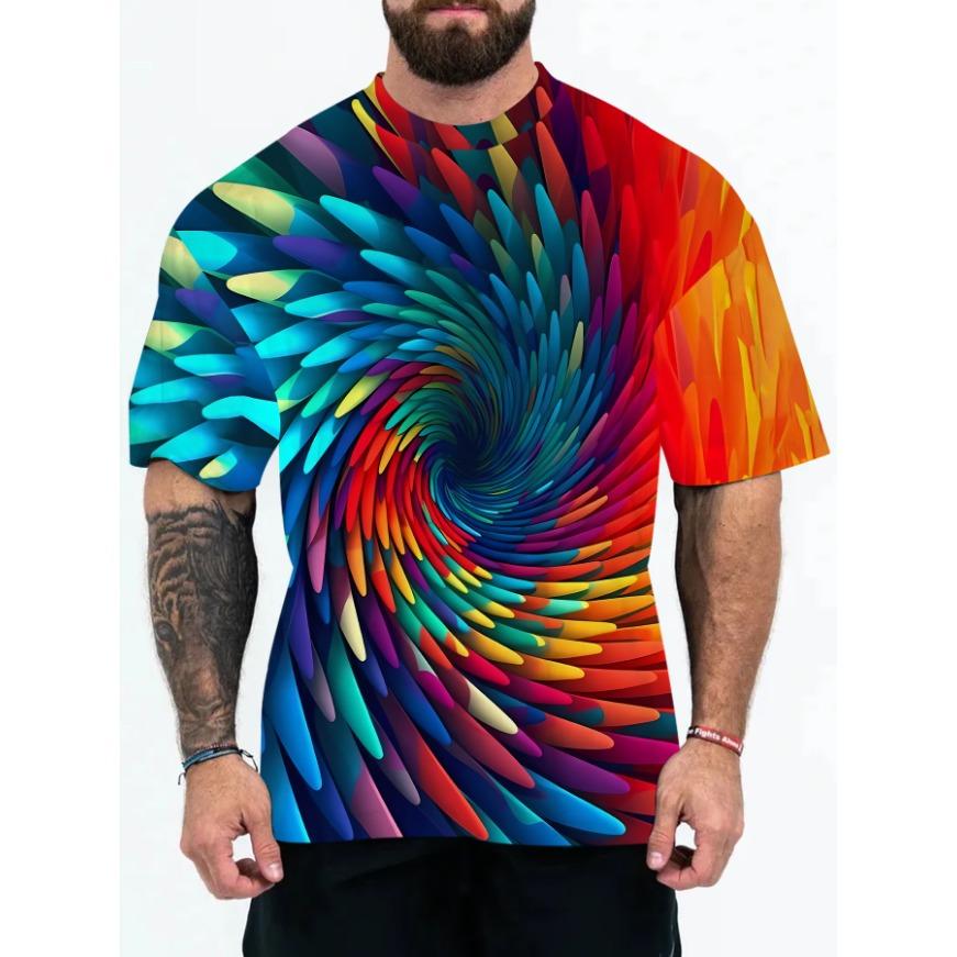 Вращающийся вихревой узор, мужские летние спортивные футболки с круглым вырезом и коротким рукавом, футболка с 3D-принтом, повседневные дышащие топы