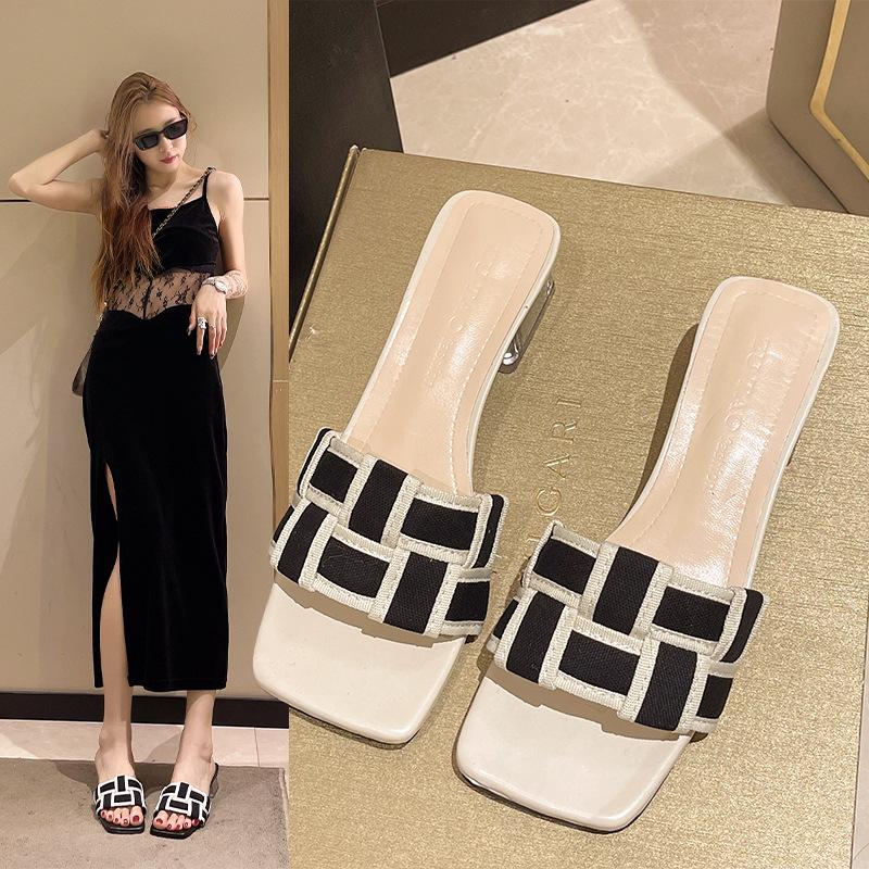 Прозрачные и полутапочки, женская летняя верхняя одежда 2025 года, новый стиль, модные сандалии на толстом каблуке с квадратным носком, односложные