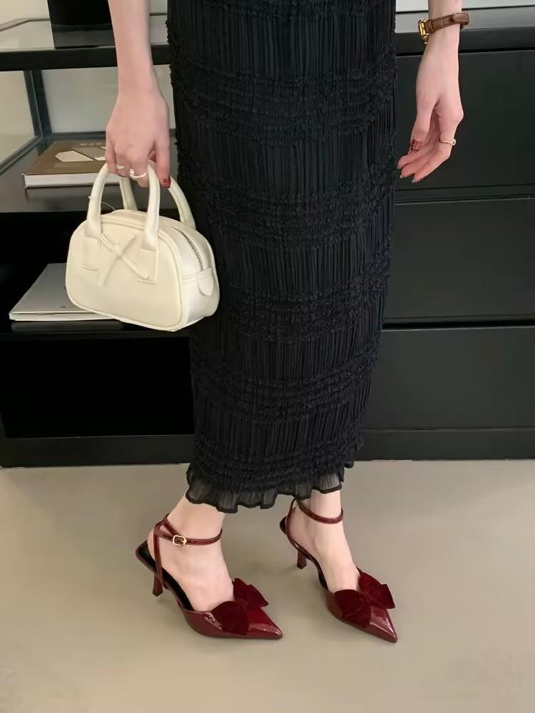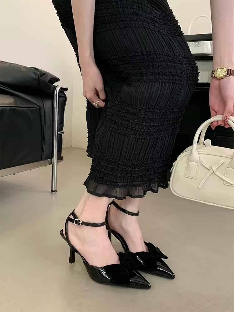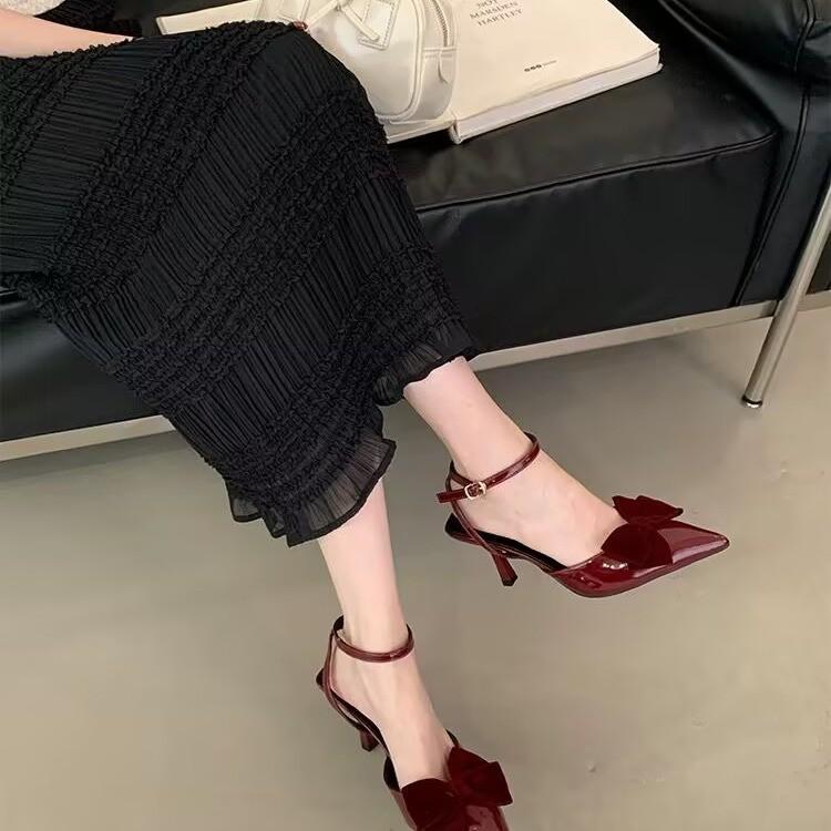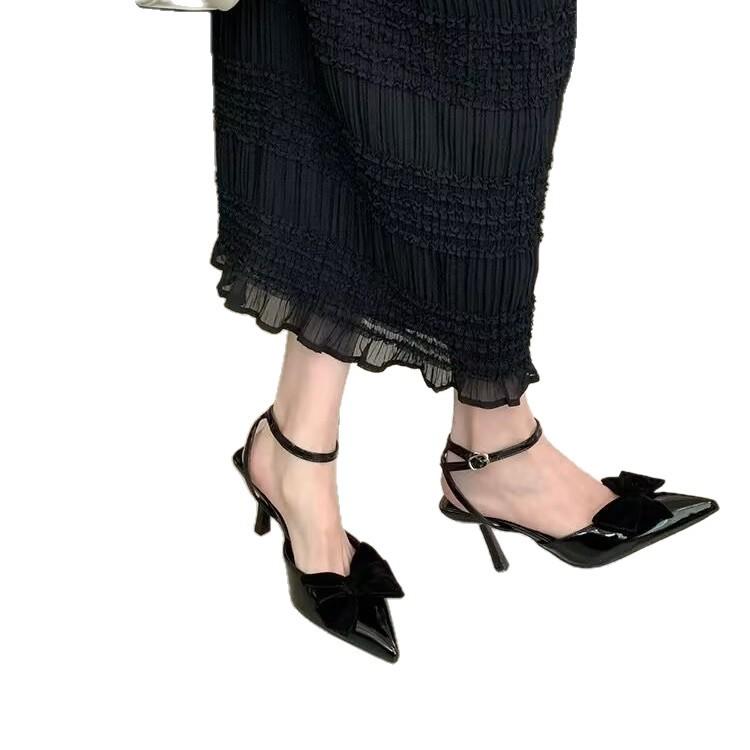2025 лето новые сандалии женские острый носок бант сумка голова слово пряжка тонкий каблук нежные сандалии на высоком каблуке