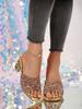2025 летние новые тапочки женские прозрачные стразы квадратная голова слово кристалл высокий каблук мода повседневный толстый каблук слово