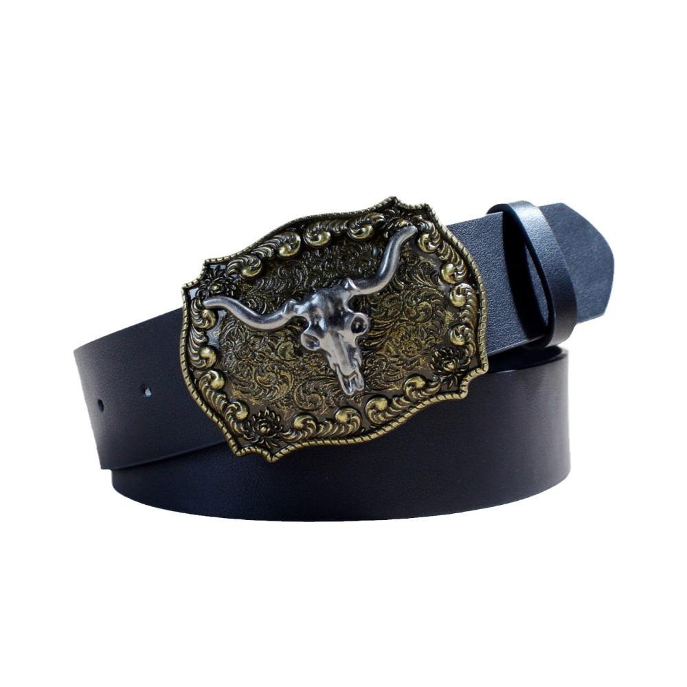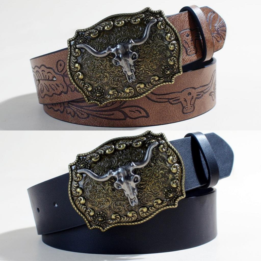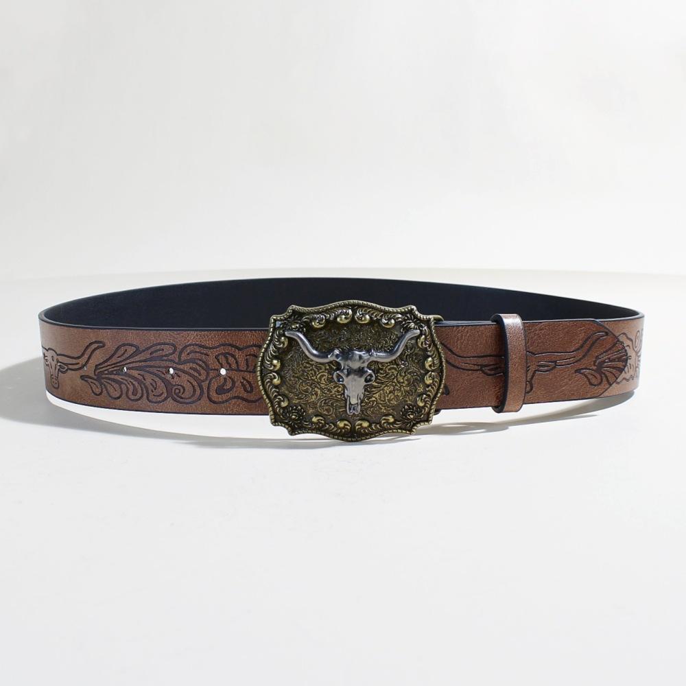 Ремень из джинсовой ткани в стиле вестерн, серебристый, с изображением головы быка и большого рта, ретро, мужской и женский, тисненый ремень из искусственной кожи в стиле панк
