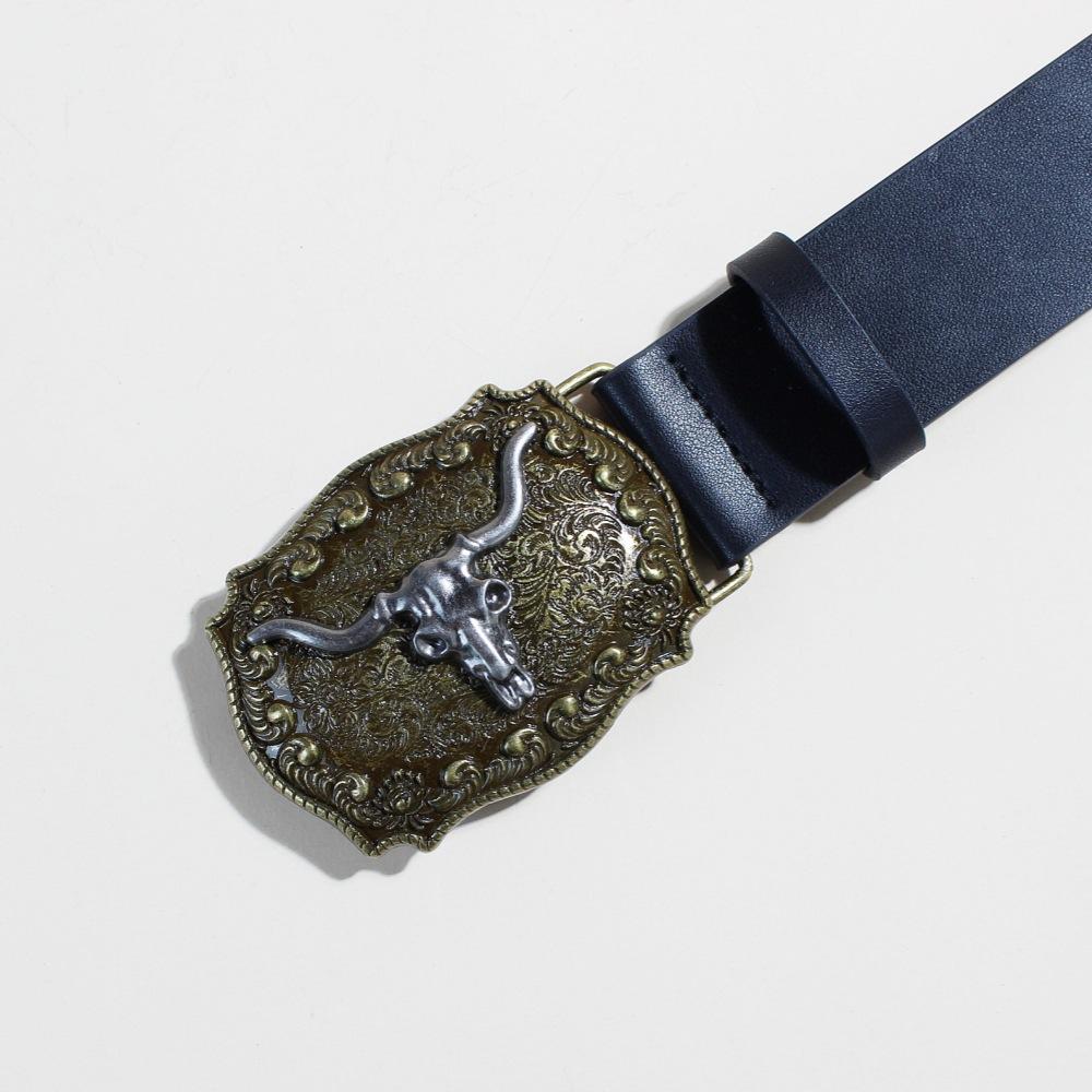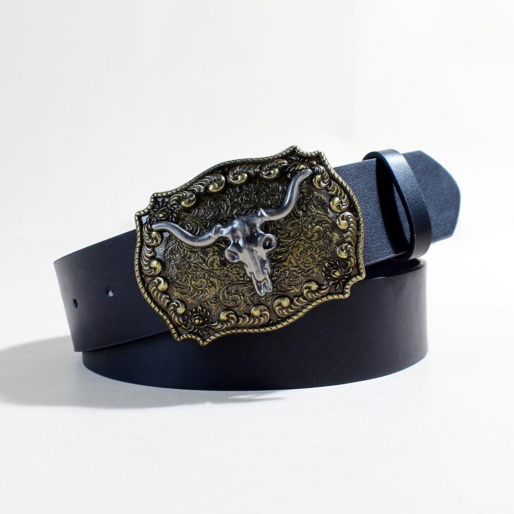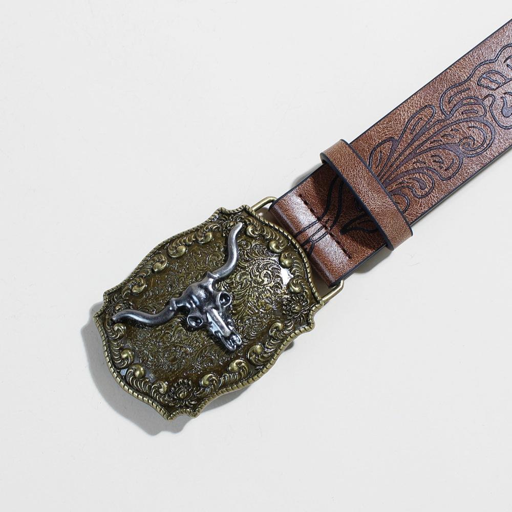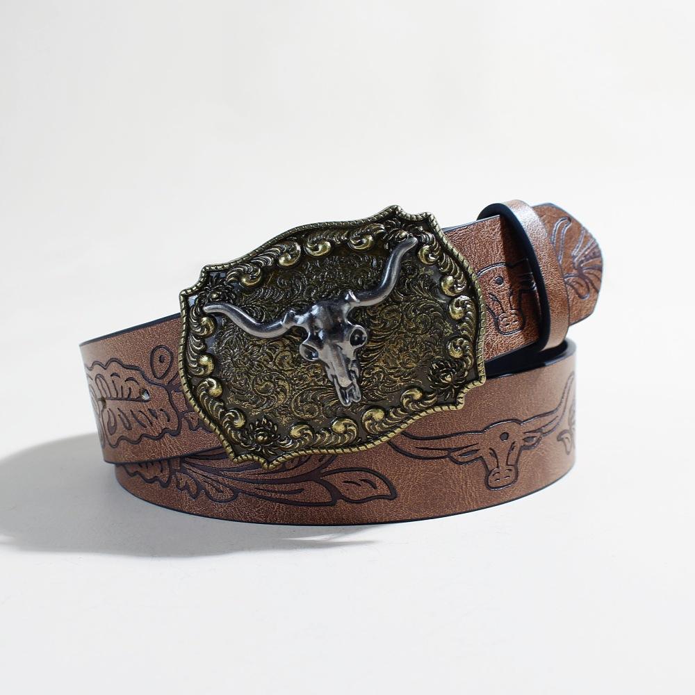 Ремень из джинсовой ткани в стиле вестерн, серебристый, с изображением головы быка и большого рта, ретро, мужской и женский, тисненый ремень из искусственной кожи в стиле панк
