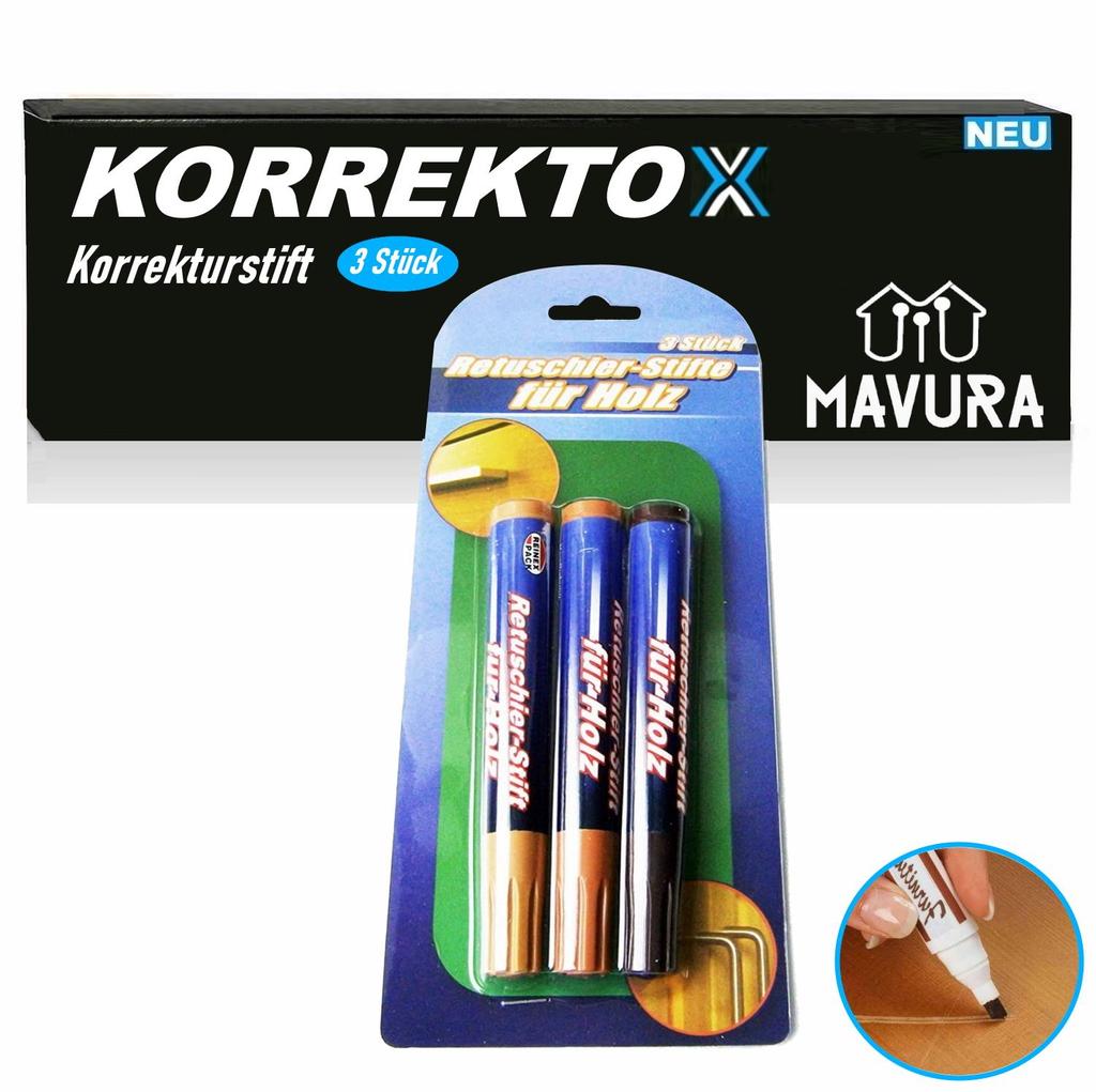 С помощью ретуширующих ручек для дерева вы получите немедленную помощь в случае небольших аварий.. Благодаря трем корректирующим карандашам разных оттенков вы сможете навсегда замаскировать потертости и царапины на дереве, и ваша мебель снова засияет как новая.