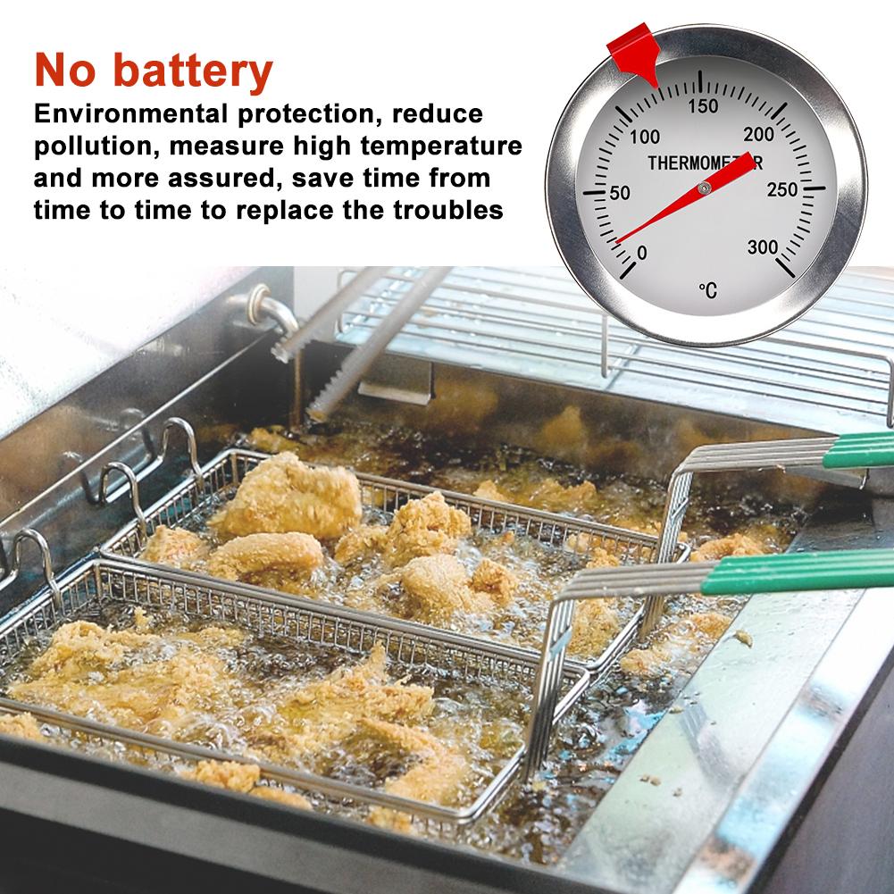 Жареный термометр из нержавеющей стали устойчив к высоким температурам и коррозии и подходит для различных видов приготовления пищи.