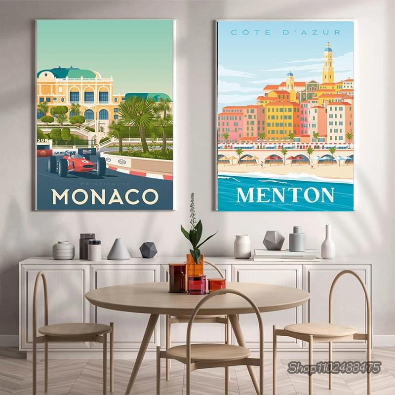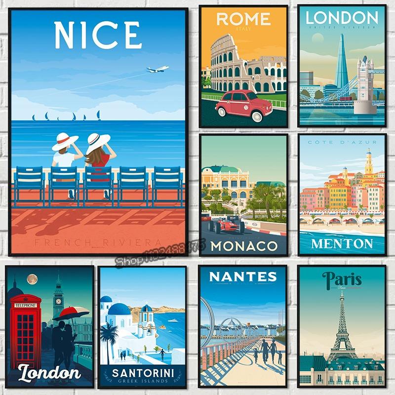 Цветная Европа Путешествия Городской Пейзаж Холст Живопись Франция Ницца Париж Монако Нант Постер Скандинавские Картины для Стен Домашний Декор