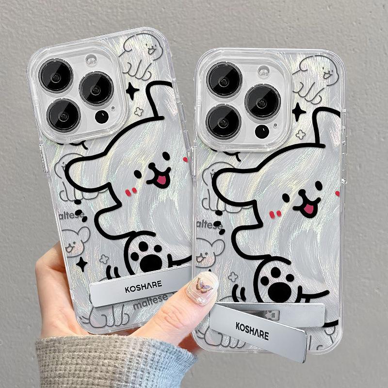 Подходит для Apple 15PM Чехол для мобильного телефона iPhone14 Line Puppy Bracket 13 Feather Yarn 12 Laser IMD Soft Edge — купить товар онлайн с бесплатной доставкой по всему миру!