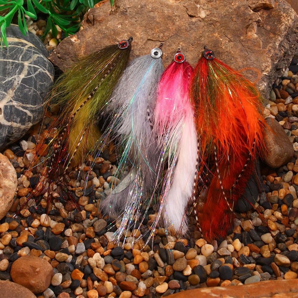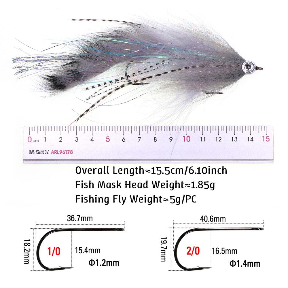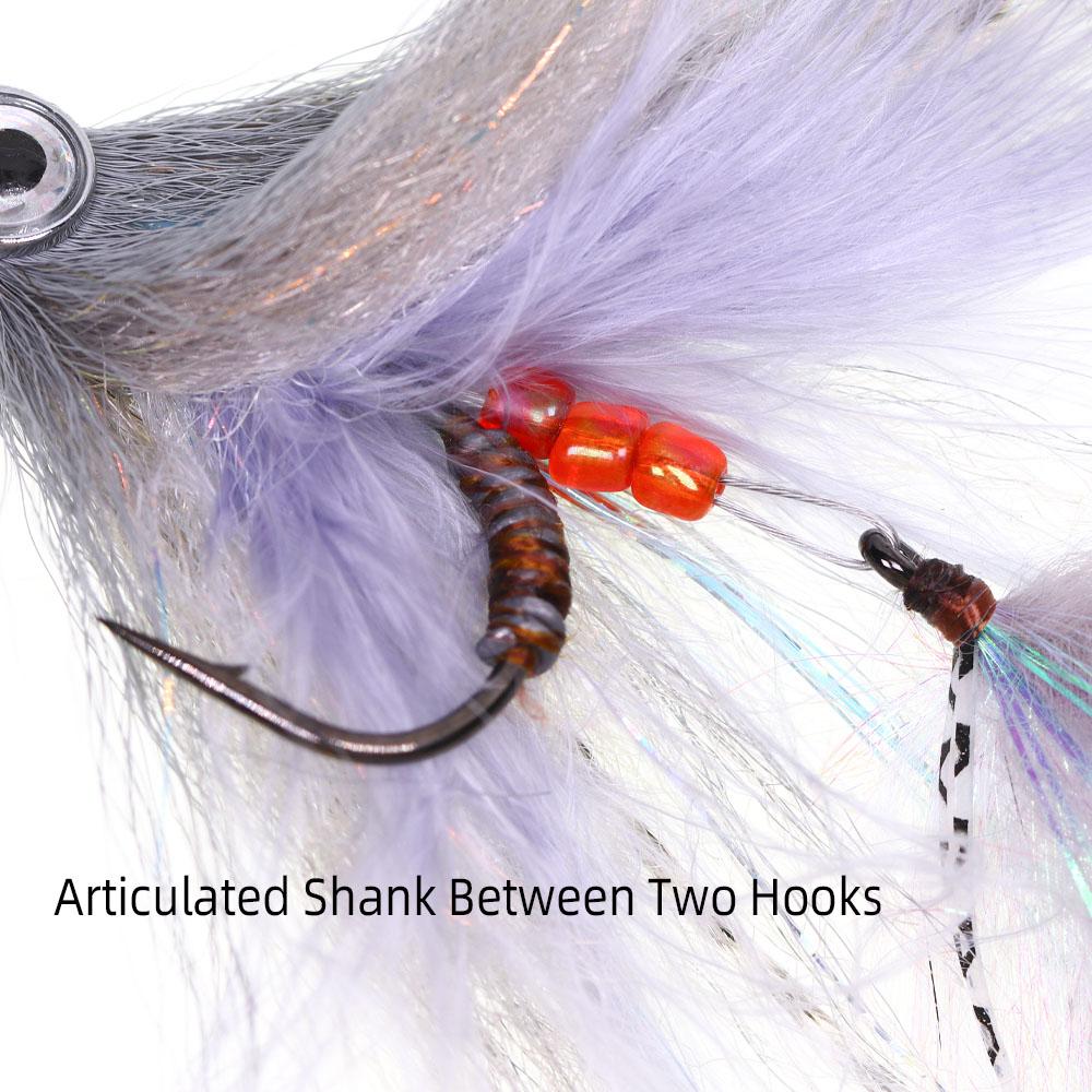 4Colors Big Articulated Streamer Fly Tying Fishing Lure 2Hooks Big Game Streamer Fly Metal Fish Mask Fly Fishing