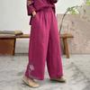 Укороченные брюки летнего нового стиля с вышивкой, широкие прямые брюки в литературном ретро-этническом стиле, свободные универсальные узкие повседневные брюки