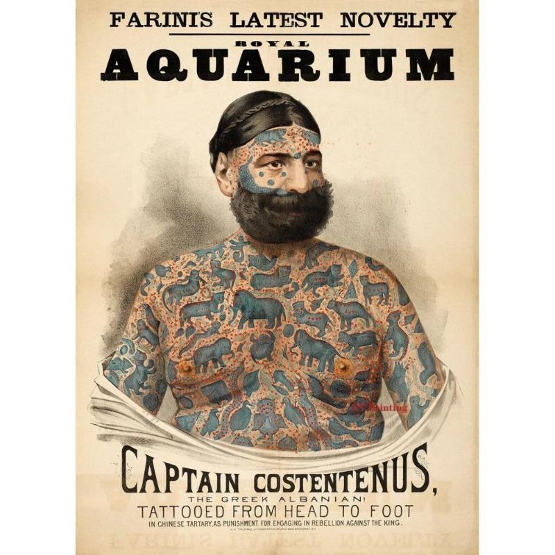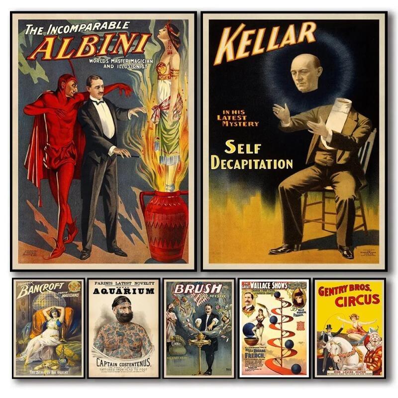 Винтажные цирковые принты с магическими шоу, плакат с татуировкой фокусника Келлара и капитана Костентенуса, настенные картины на холсте, уникальный дом