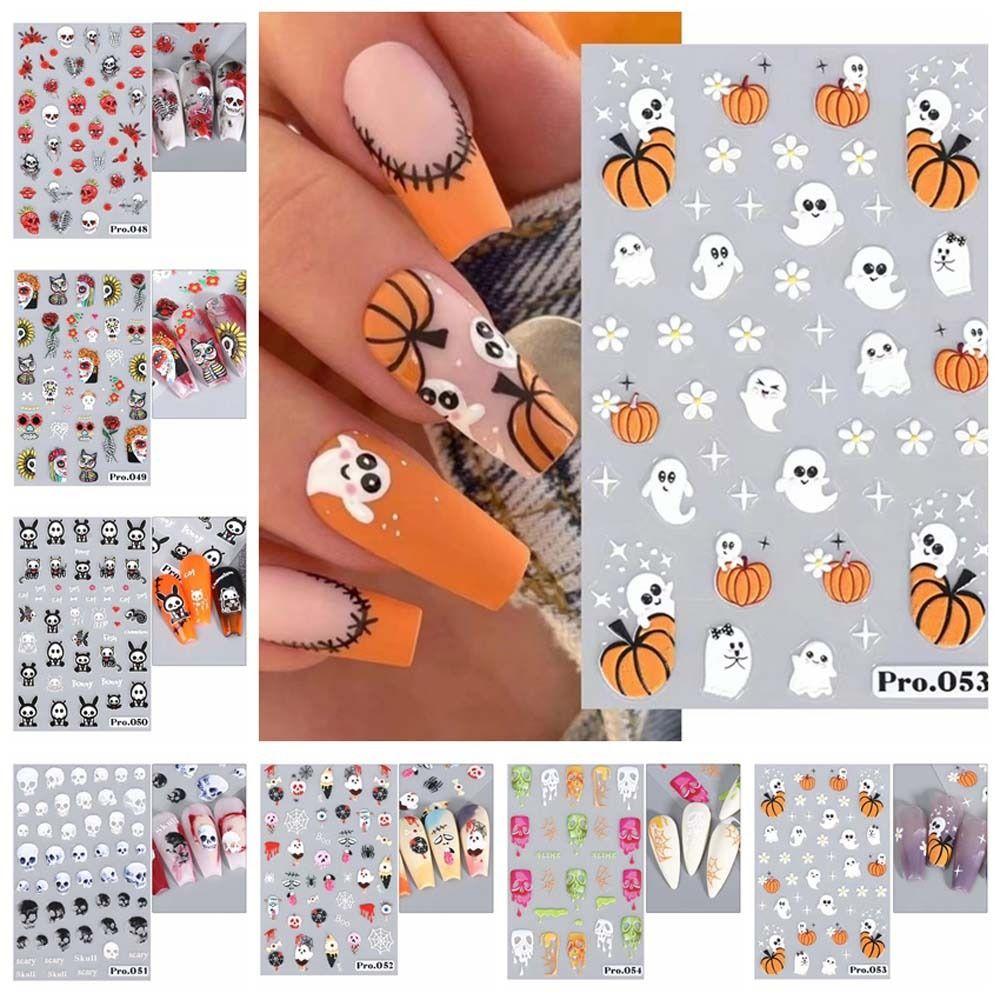 Наклейки на ногти в виде тыквы на Хэллоуин, узор в виде черепа-призрака, наклейки на ногти на Хэллоуин, красочный маникюрный салон