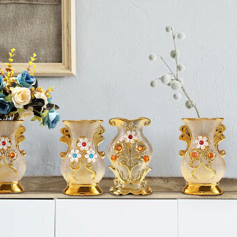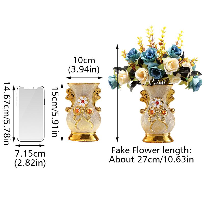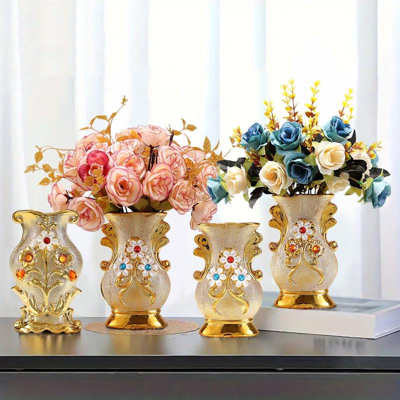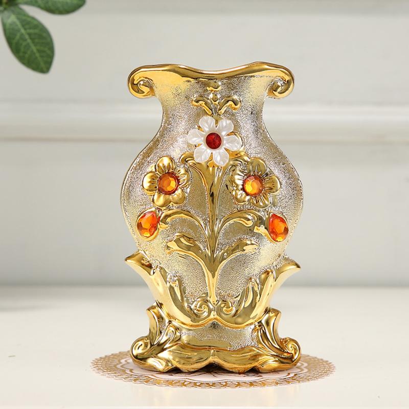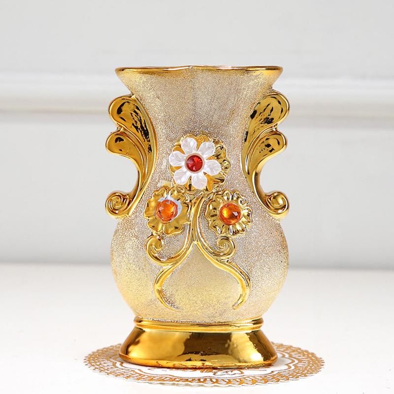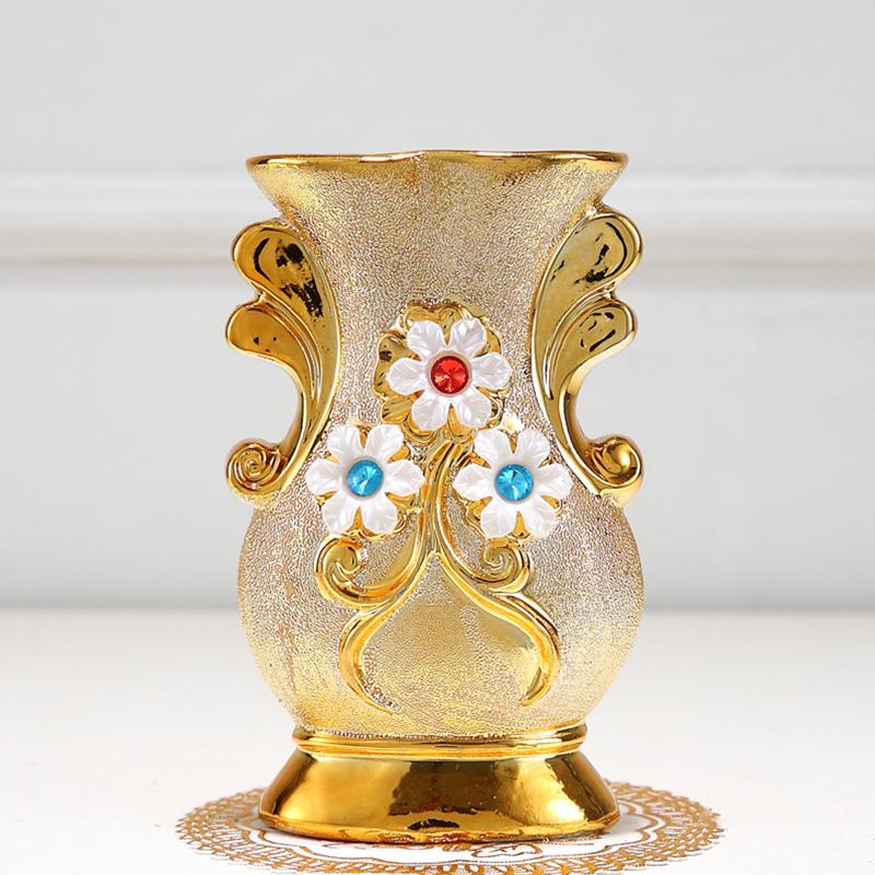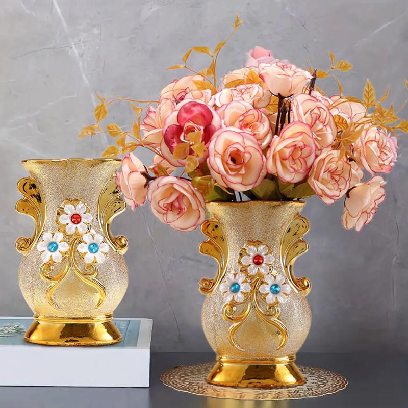 1 шт. Золотая керамическая ваза для цветов, домашний декор, цветочный узор, ваза в европейском стиле, позолоченная, в форме рога, для гостиной