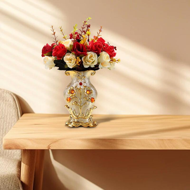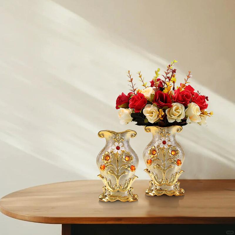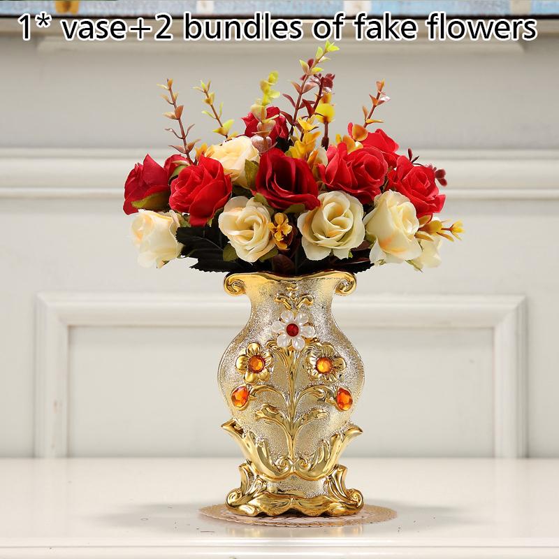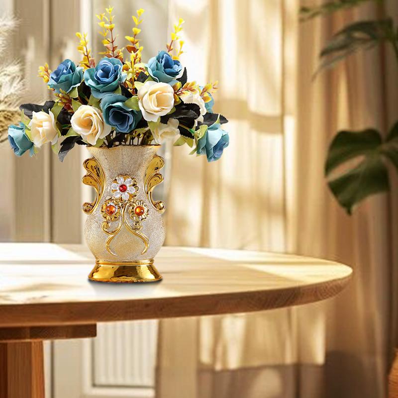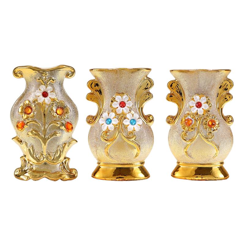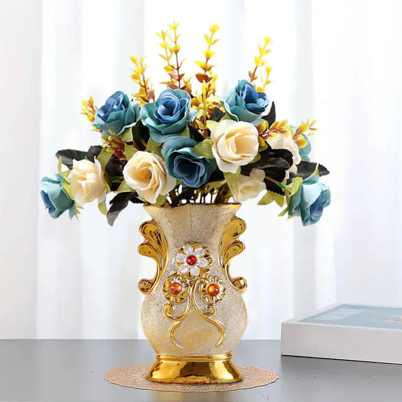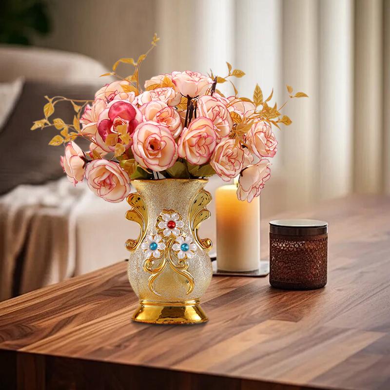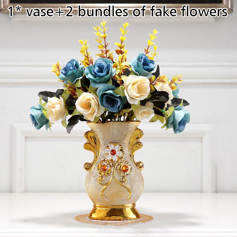 1 шт. Золотая керамическая ваза для цветов, домашний декор, цветочный узор, ваза в европейском стиле, позолоченная, в форме рога, для гостиной