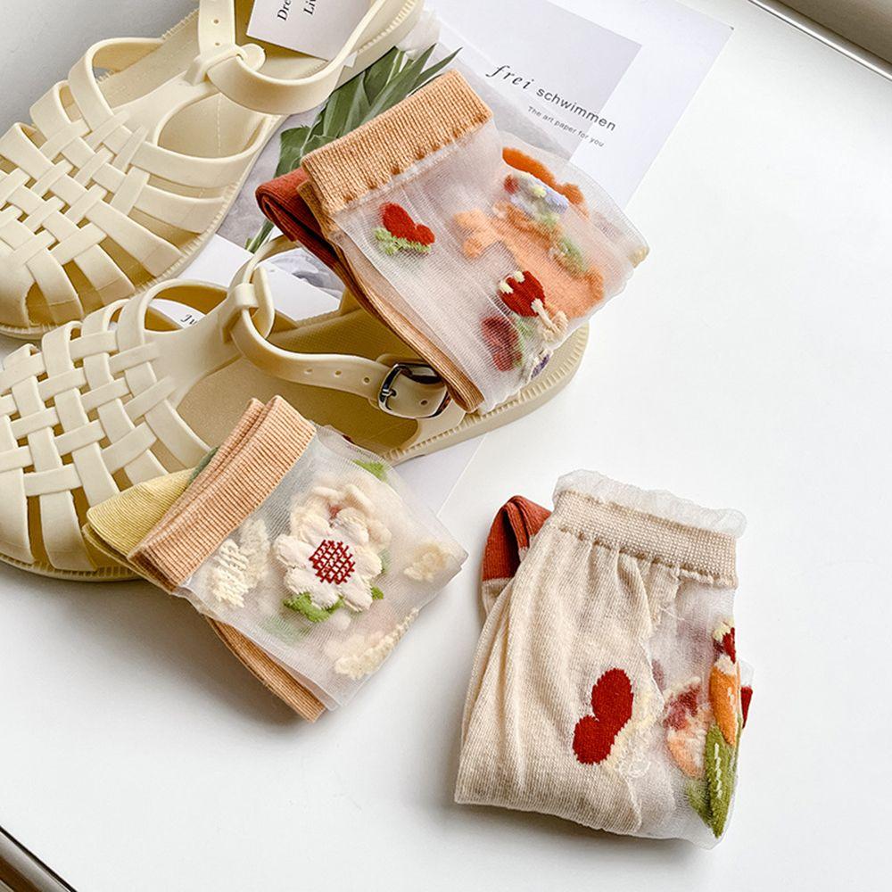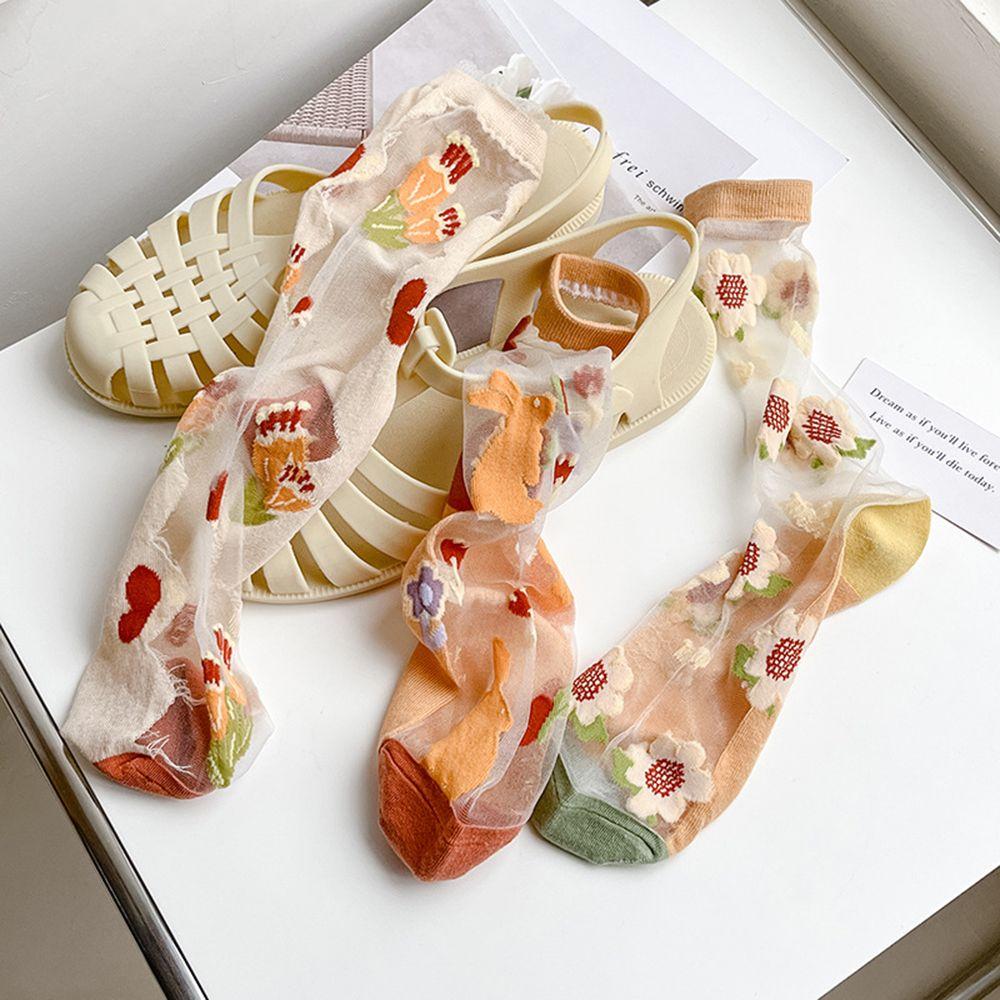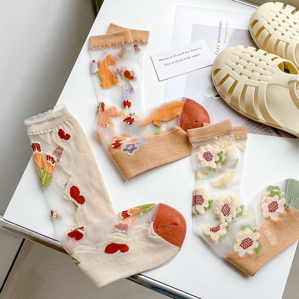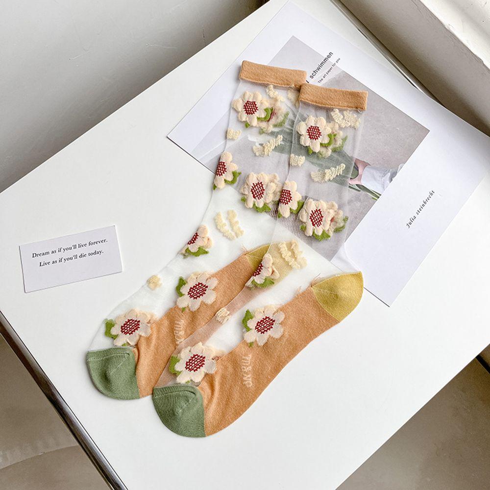 Летние носки в японском стиле из нежного шелка, женские носки средней длины с цветочным узором