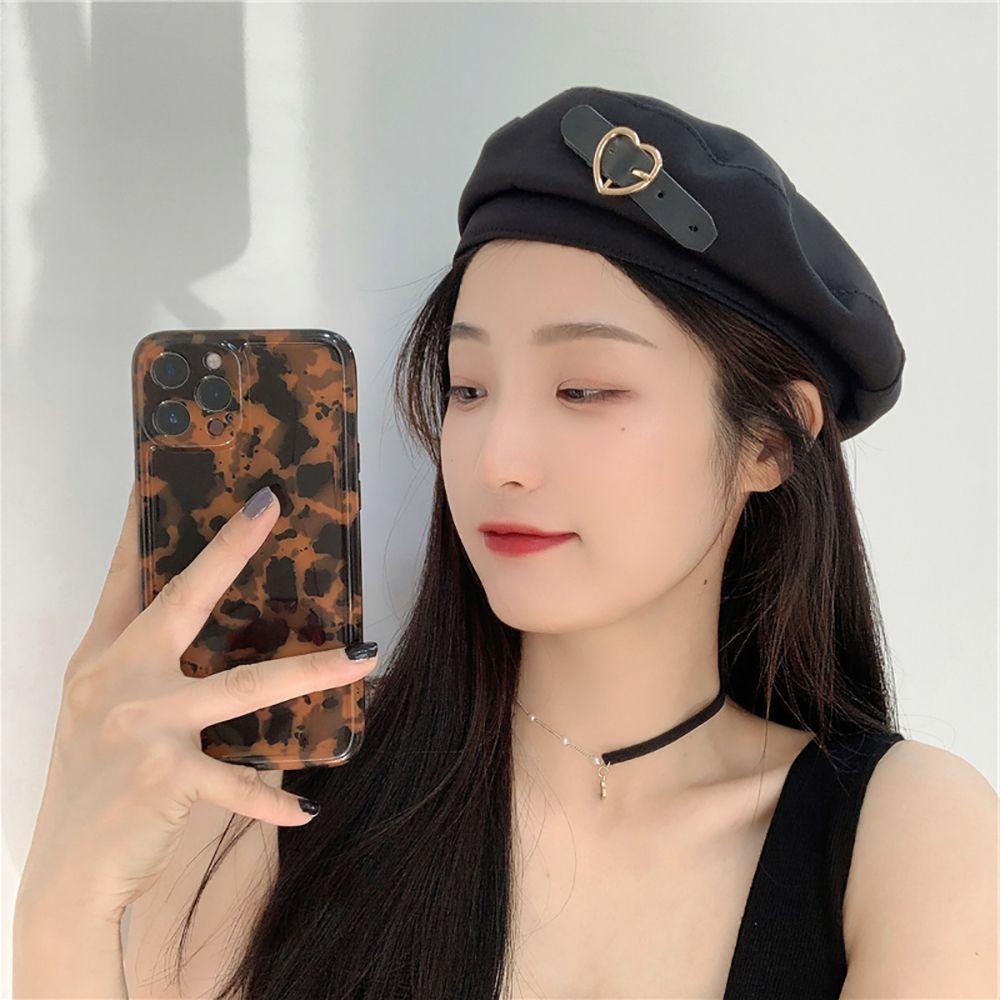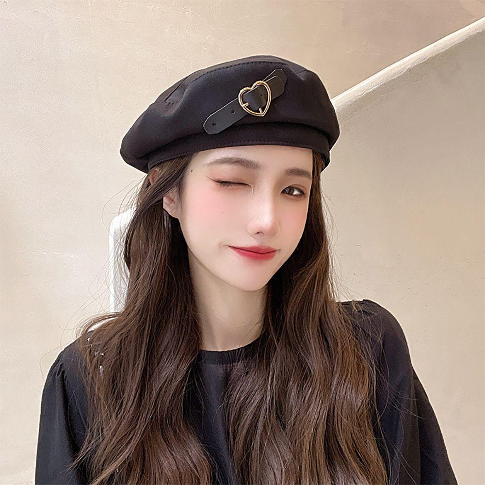 Корейская повседневная зимняя осенняя женская теплая шапка-мужчина, берет с кожаной пряжкой в форме сердца