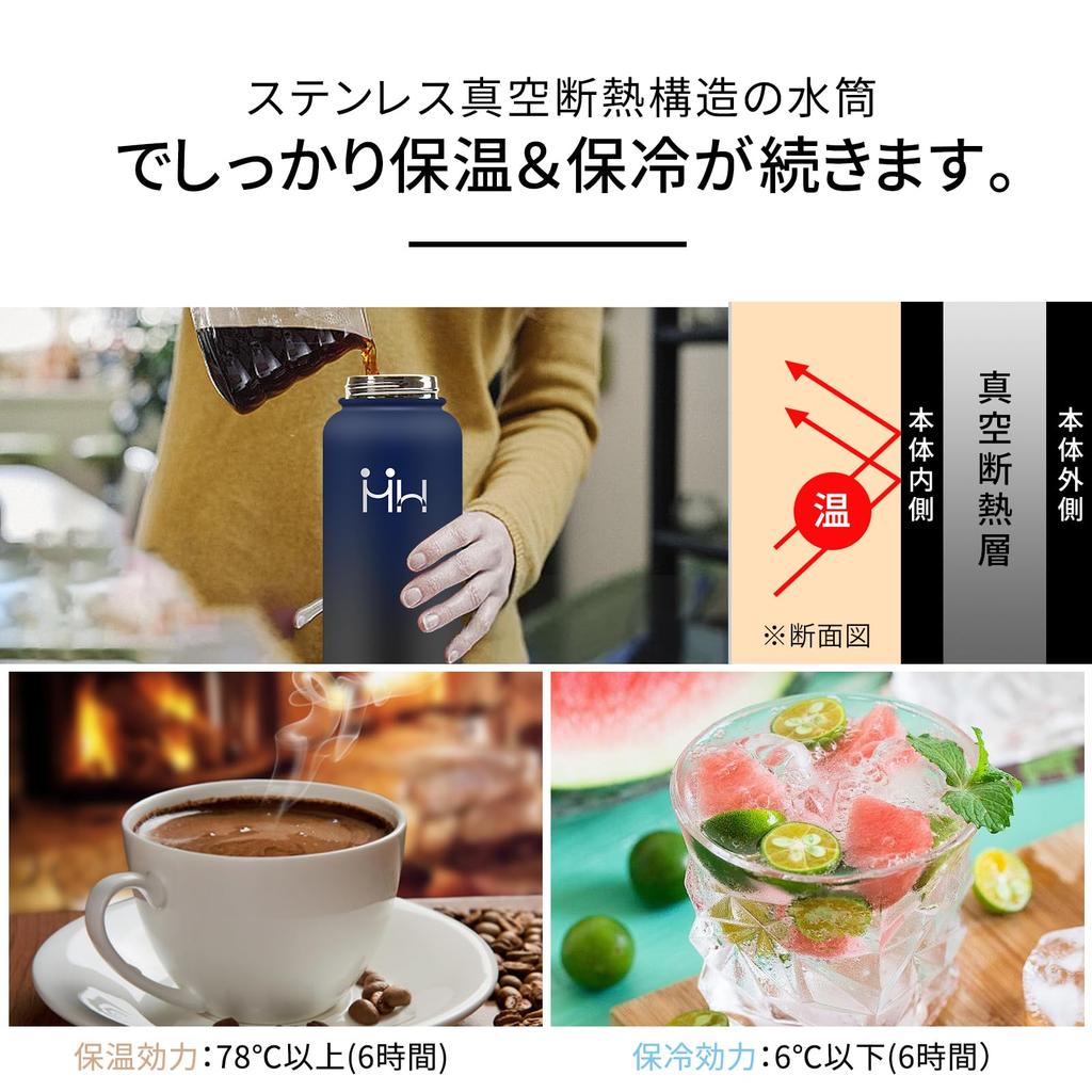 [Самые высокие показатели сохранения тепла и холода] Вакуумная изоляционная структура сохраняет температуру в течение длительного времени. Используется технология двойной вакуумной изоляции, позволяющая поддерживать температуру 78°C и выше в течение 6 часов и 8°C и ниже.. Кофе, сваренный утром, останется горячим днем, а холодные напитки летом останутся ледяными в течение длительного времени.. Даже при большой емкости в 1 литр легкая конструкция позволяет легко переносить его!
