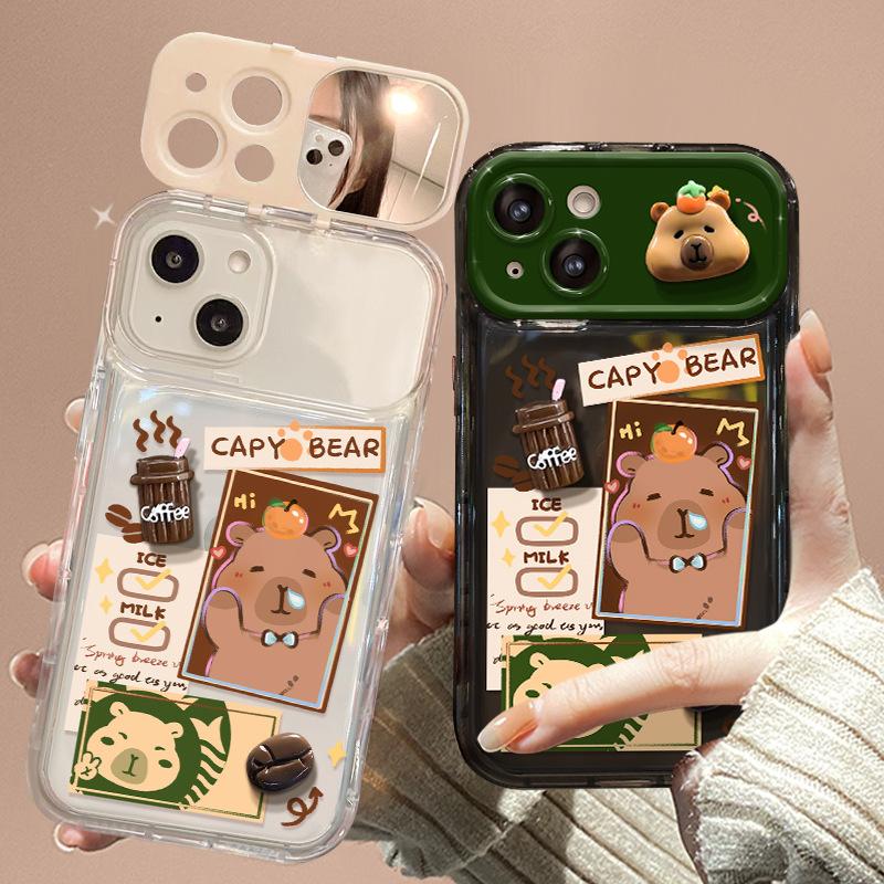 Подвеска в виде куклы Капибала, подходит для Apple 15, чехол для мобильного телефона iPhone14/13pro, откидной зеркальный чехол Xs, силикон
