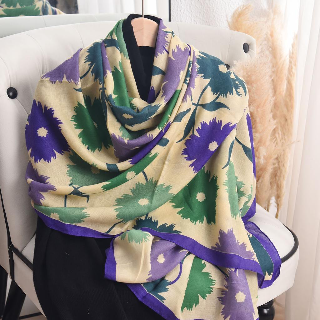 Шарф из искусственного хлопка и льна для женщин, модный весенне-летний, тонкий, пасторальный, с цветочным принтом, шелковый шарф, высококачественная шаль для темперамента