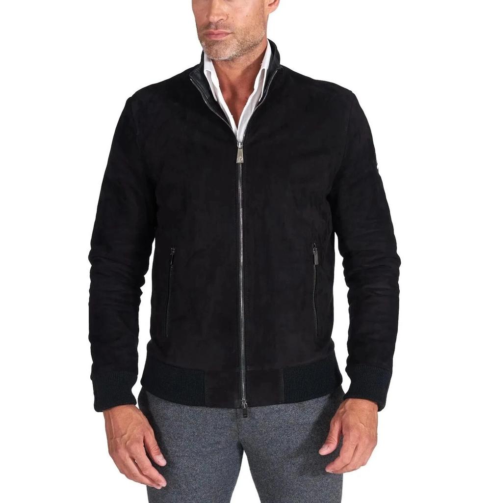 Мужская замшевая куртка ручной работы, черная куртка-бомбер из натуральной кожи, из чистой ягнячьей кожи, стильная