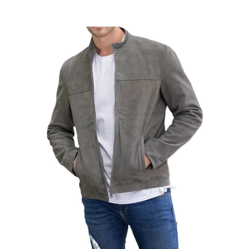 Мужская замшевая куртка из овчины, серая кожа, ручная работа, натуральная, стильная, мягкая посадка