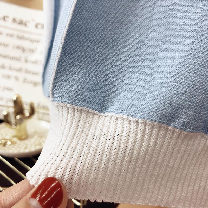 Женский вязаный свитер в весенне-летнем стиле, пуловеры, женские повседневные лоскутные пуловеры с v-образным вырезом и короткими рукавами, трикотажные топы